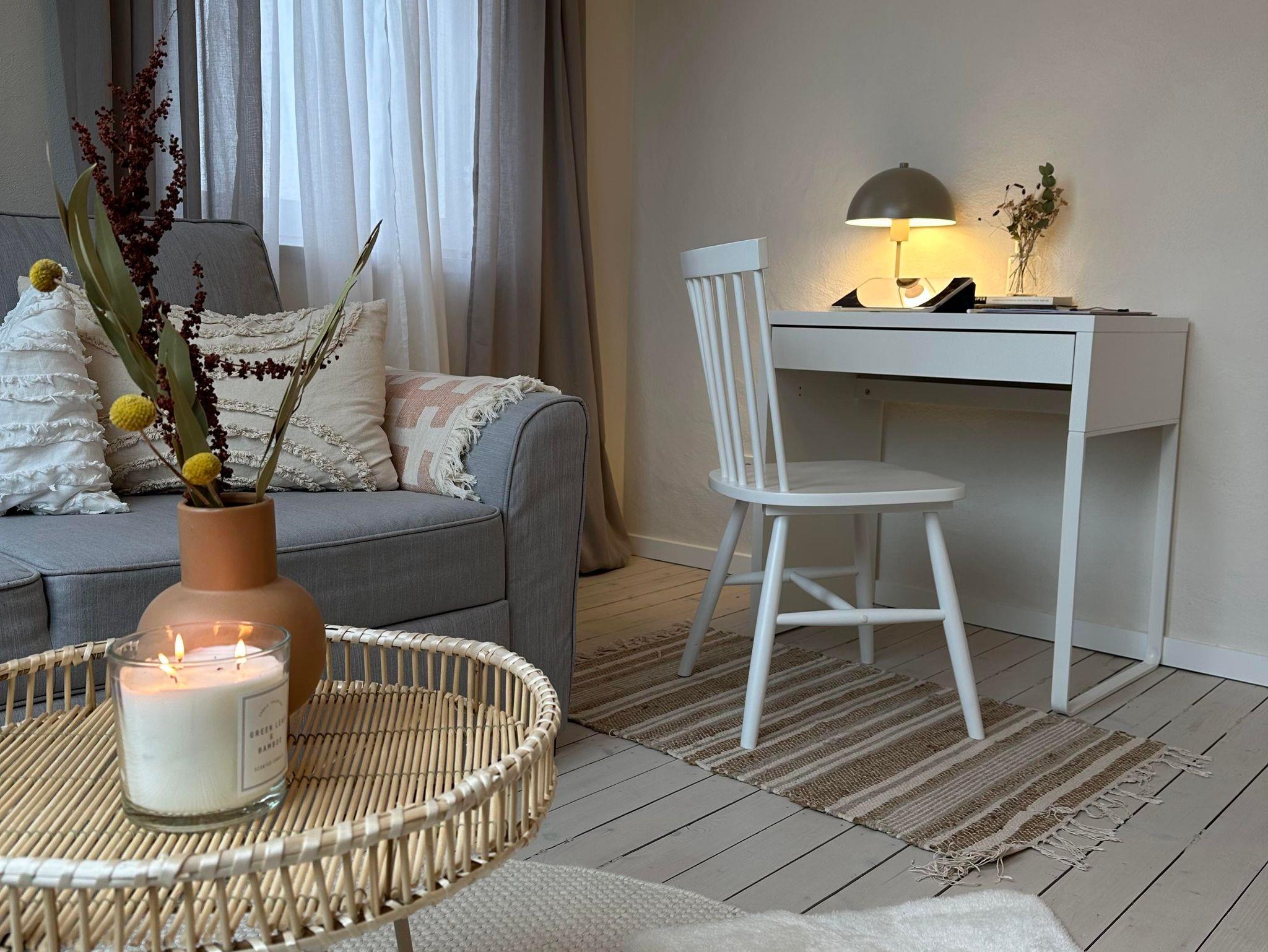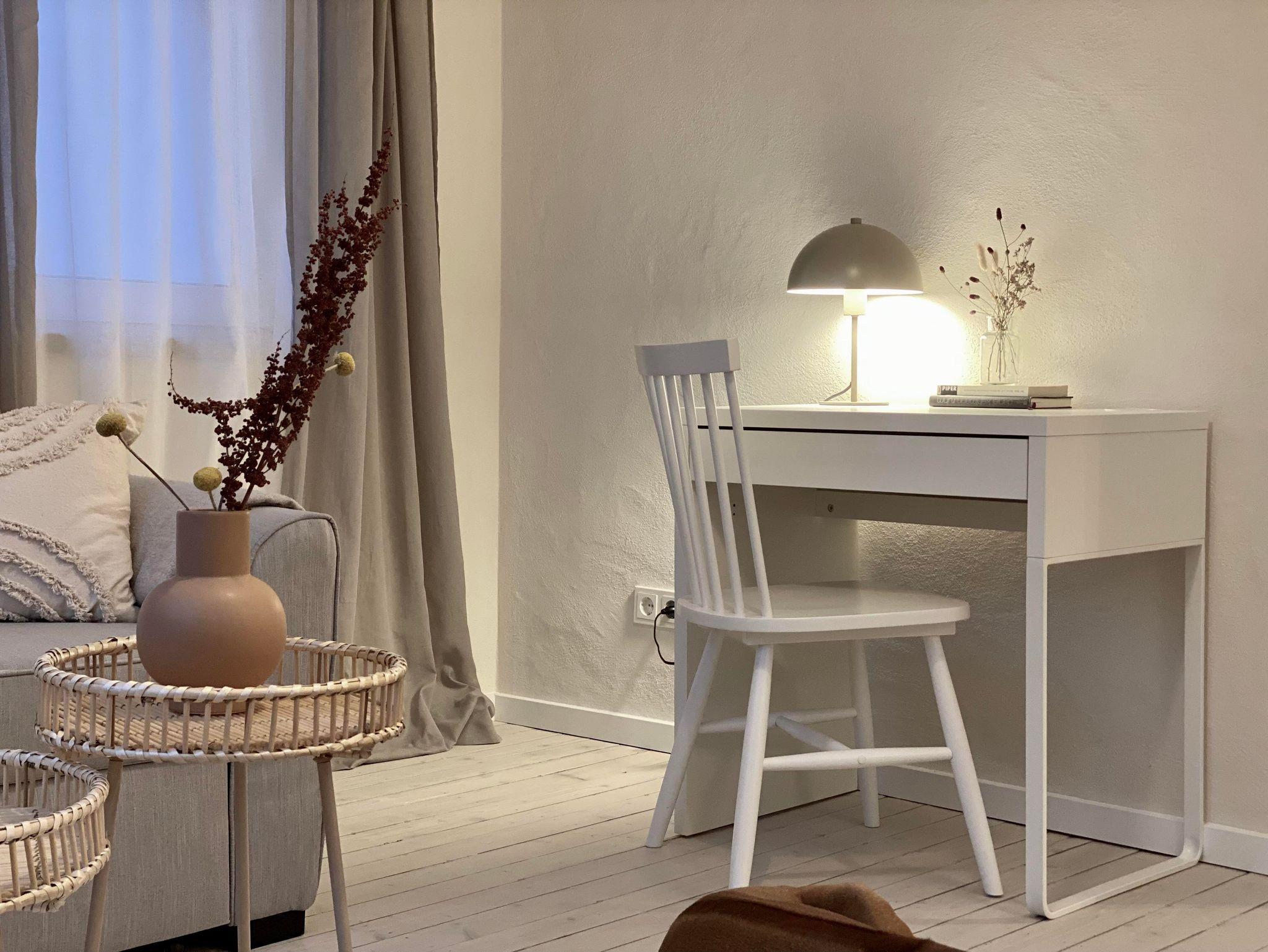 • ein Arbeitsplatz im Wohnzimmer, mit Tür von den anderen Räumen trennbar