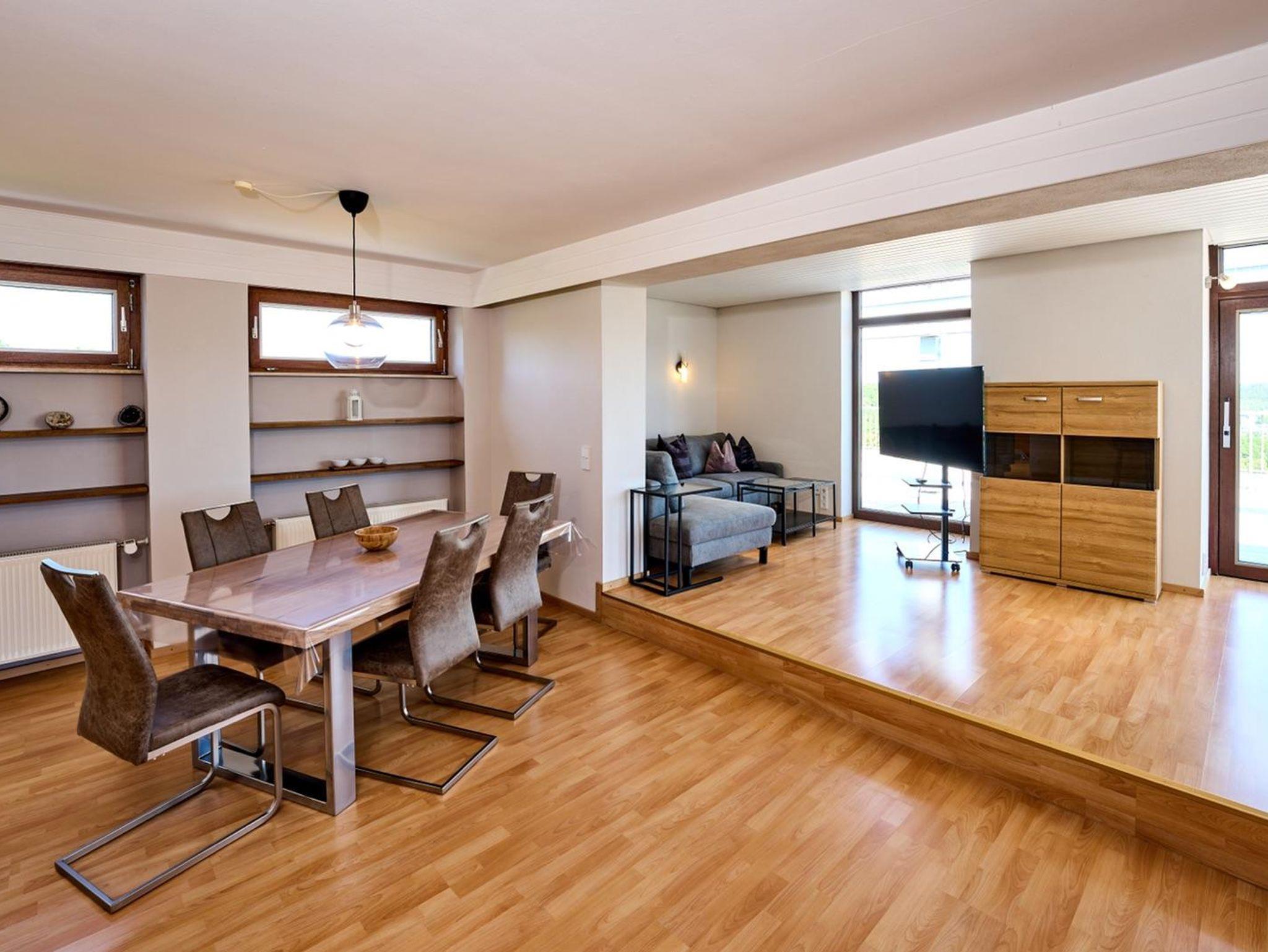 Die Ferienwohnung mit ca. 95 qm Wohnfläche liegt in der obersten 6. Etage eines Mehrfamilienhauses und bietet einen unvergleichbaren Blick auf Daun.