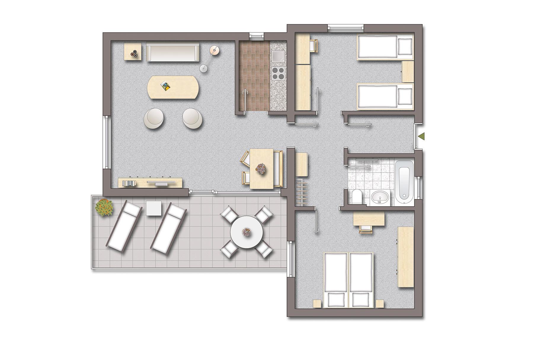 - zwei Schlafzimmer mit 4 Betten (1x Doppelbett, 1x zwei Einzelbetten oder auf Anfrage mit Etagenbett)