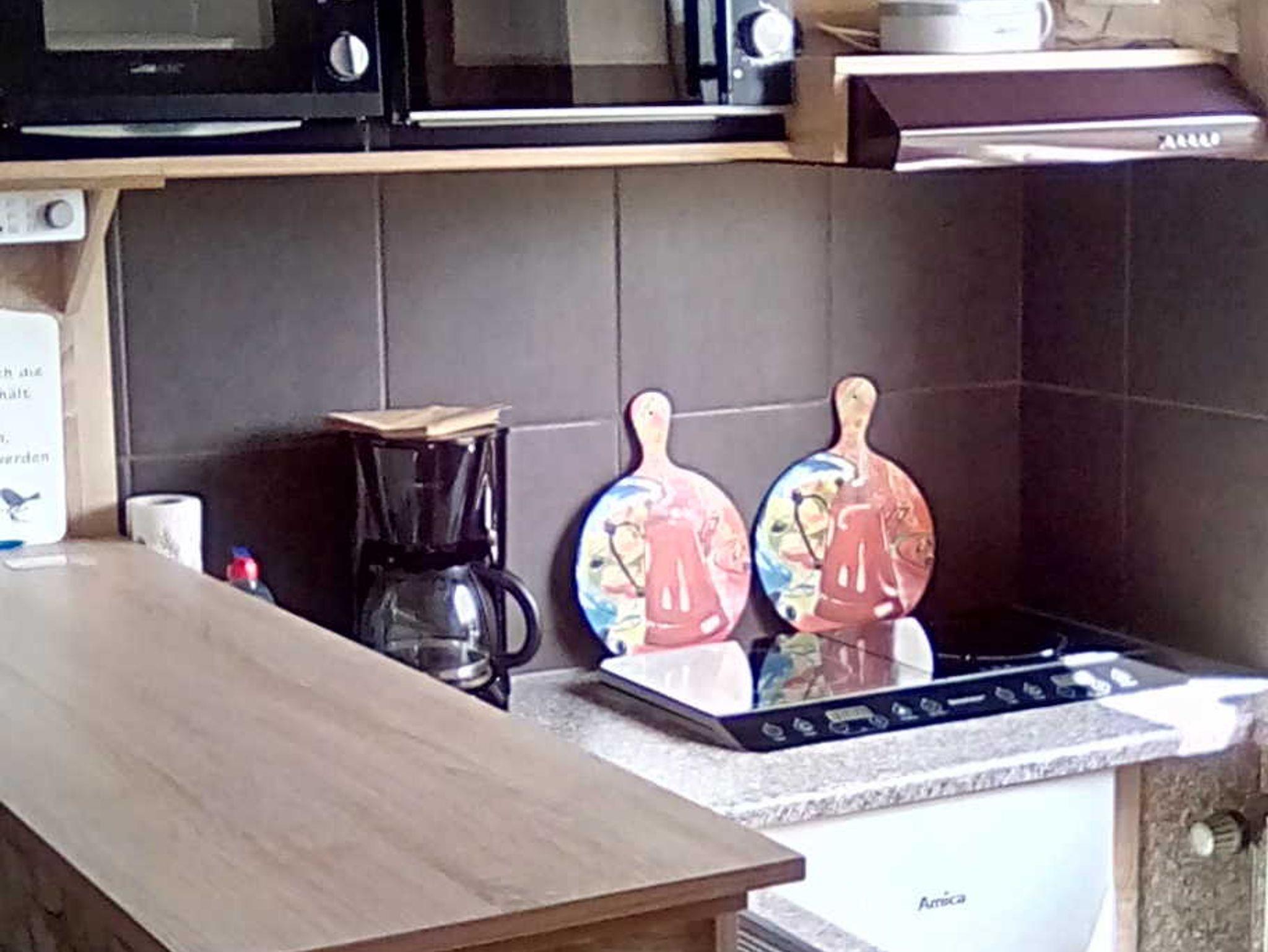 Separater Eingang. Komplette Wohnküche mit Kaffeemaschine, Wasserkocher, Eierkocher, Mikrowelle.