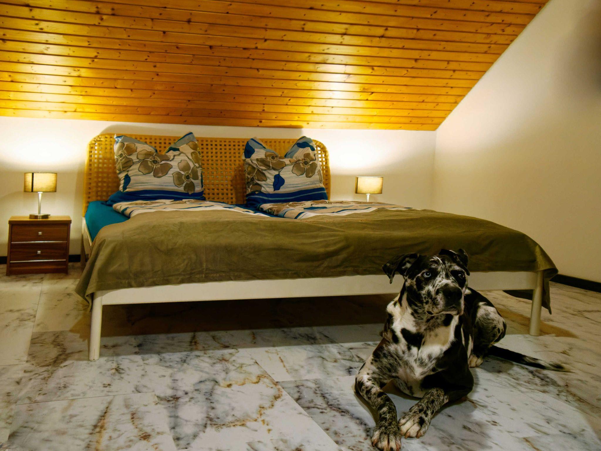 - Hundebett und Näpfe (keinerlei Einschränkungen bezüglich Rasse, Größe, Anzahl der mitgebrachten Hunde. Hunde wohnen kostenfrei)