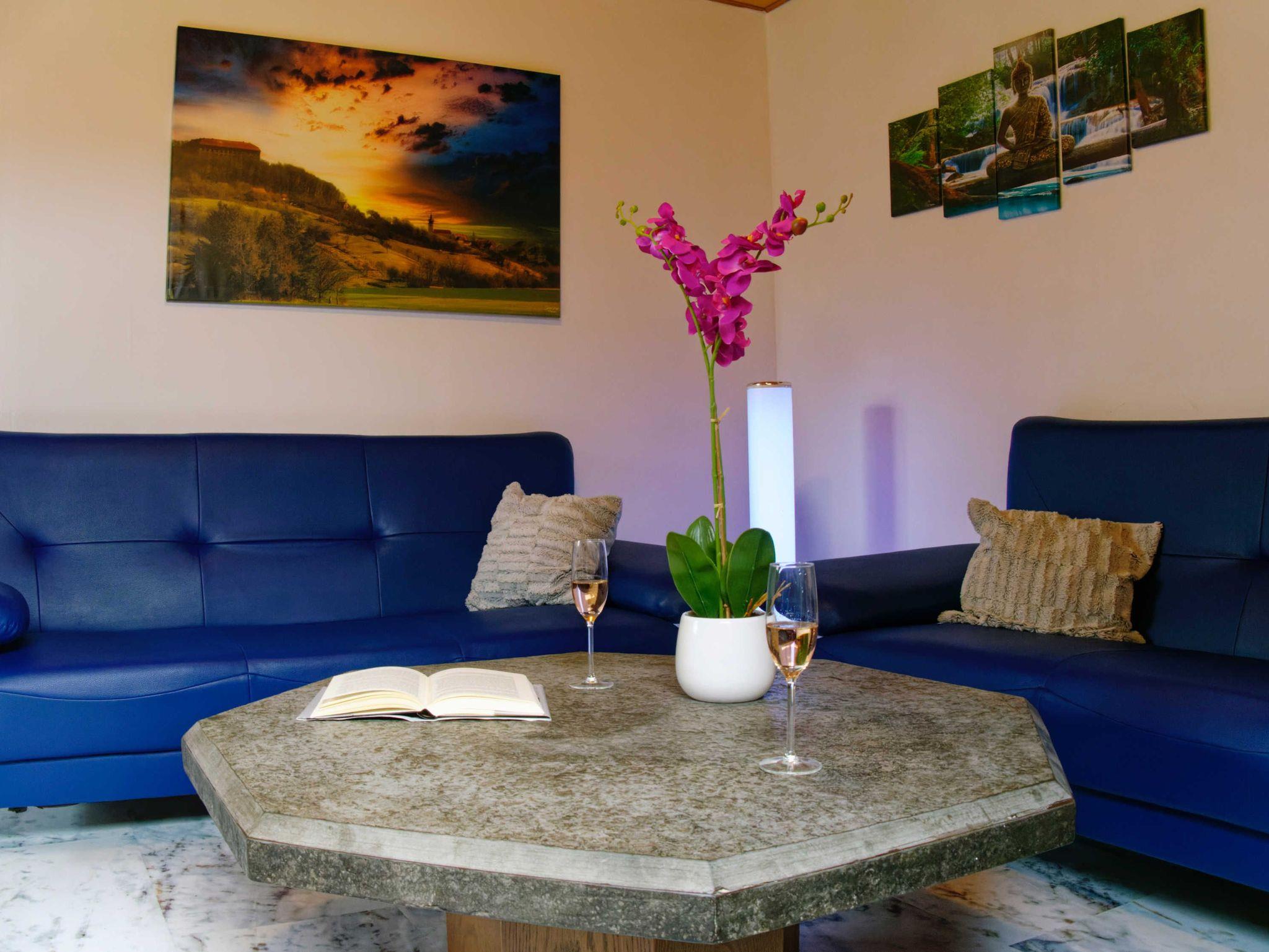 Die Ferienwohnung Schlossblick ist auf ihren rund 75 m² hell und freundlich gestaltet und befindet sich in ruhiger Lage.