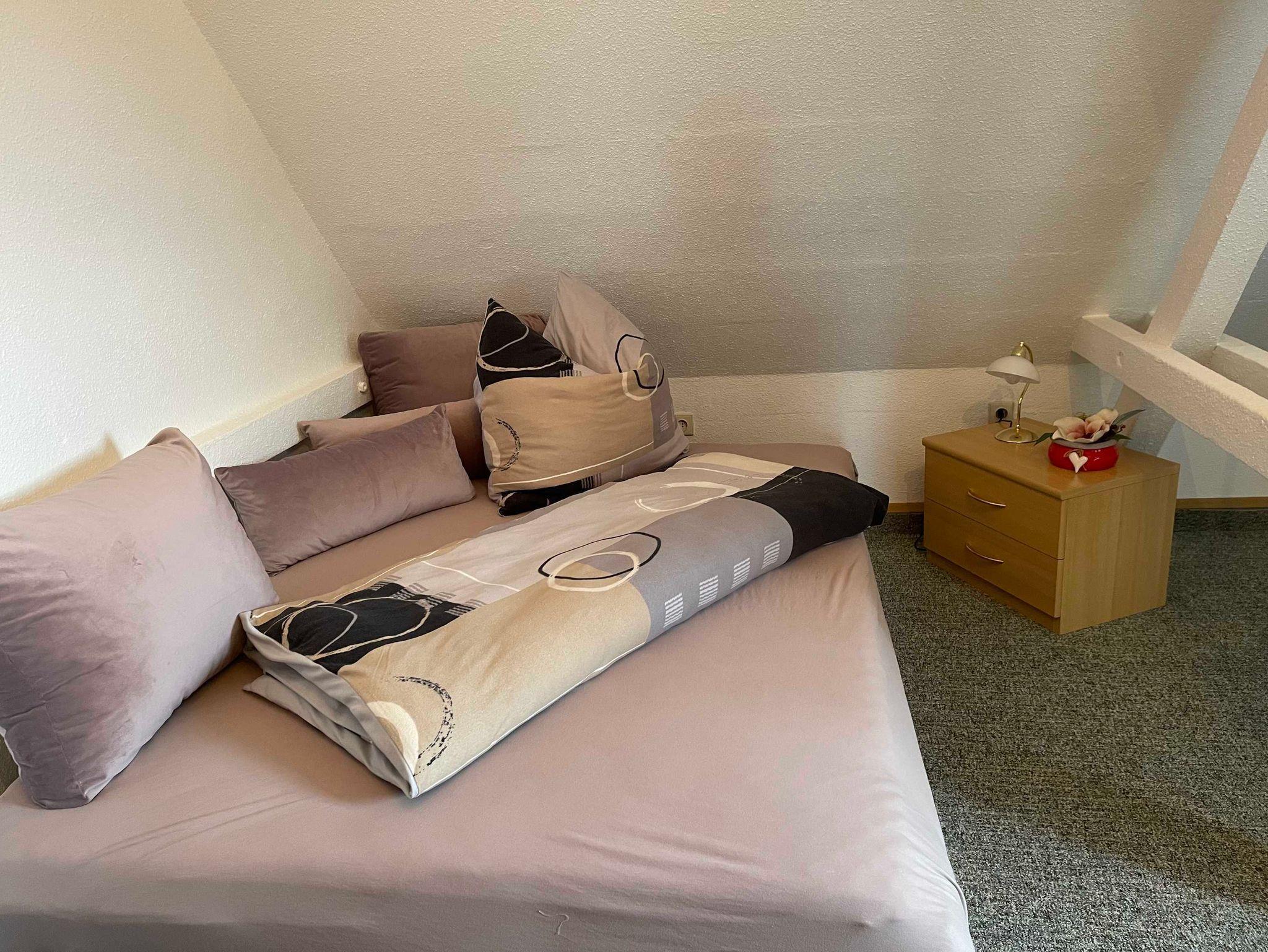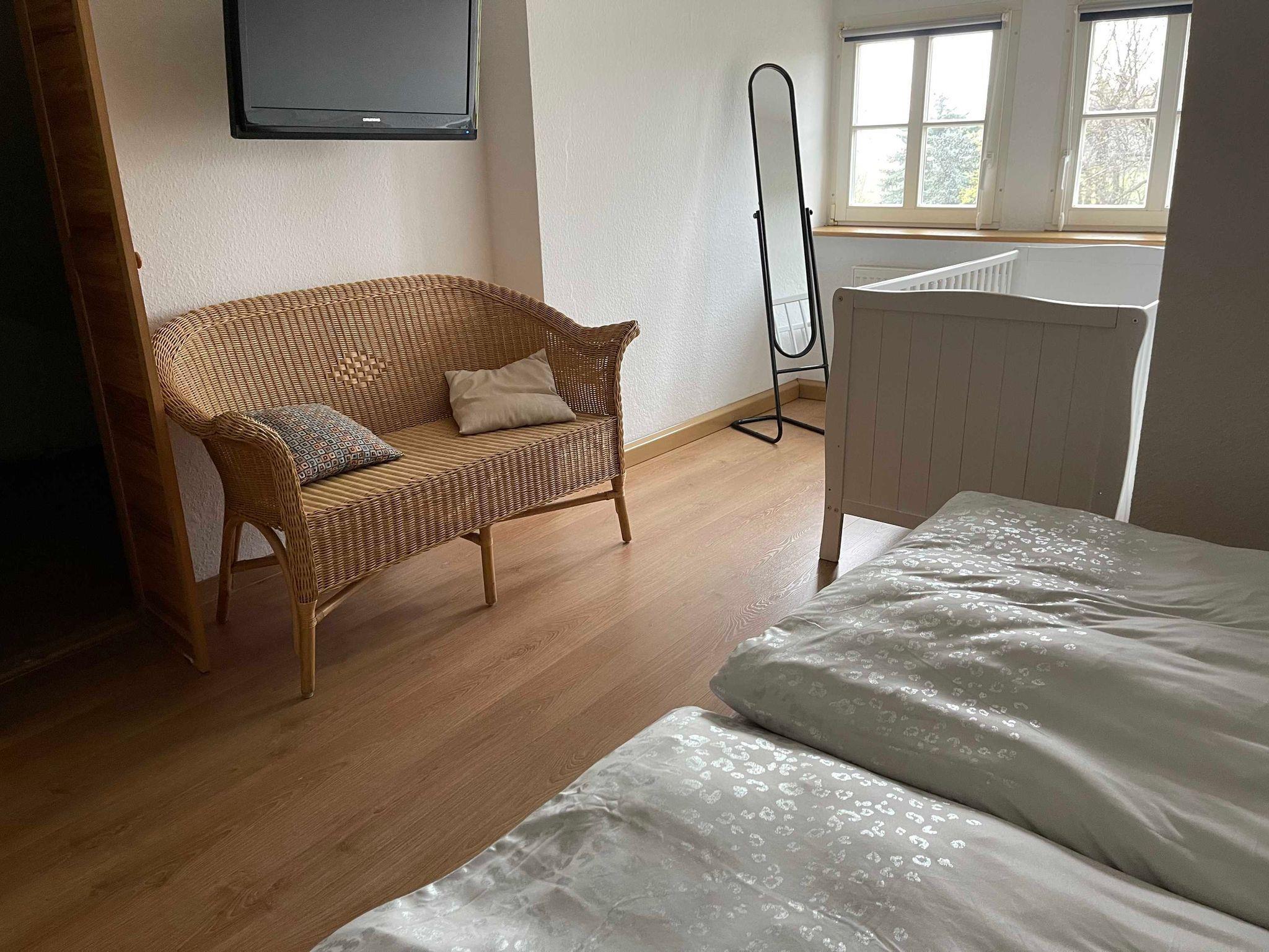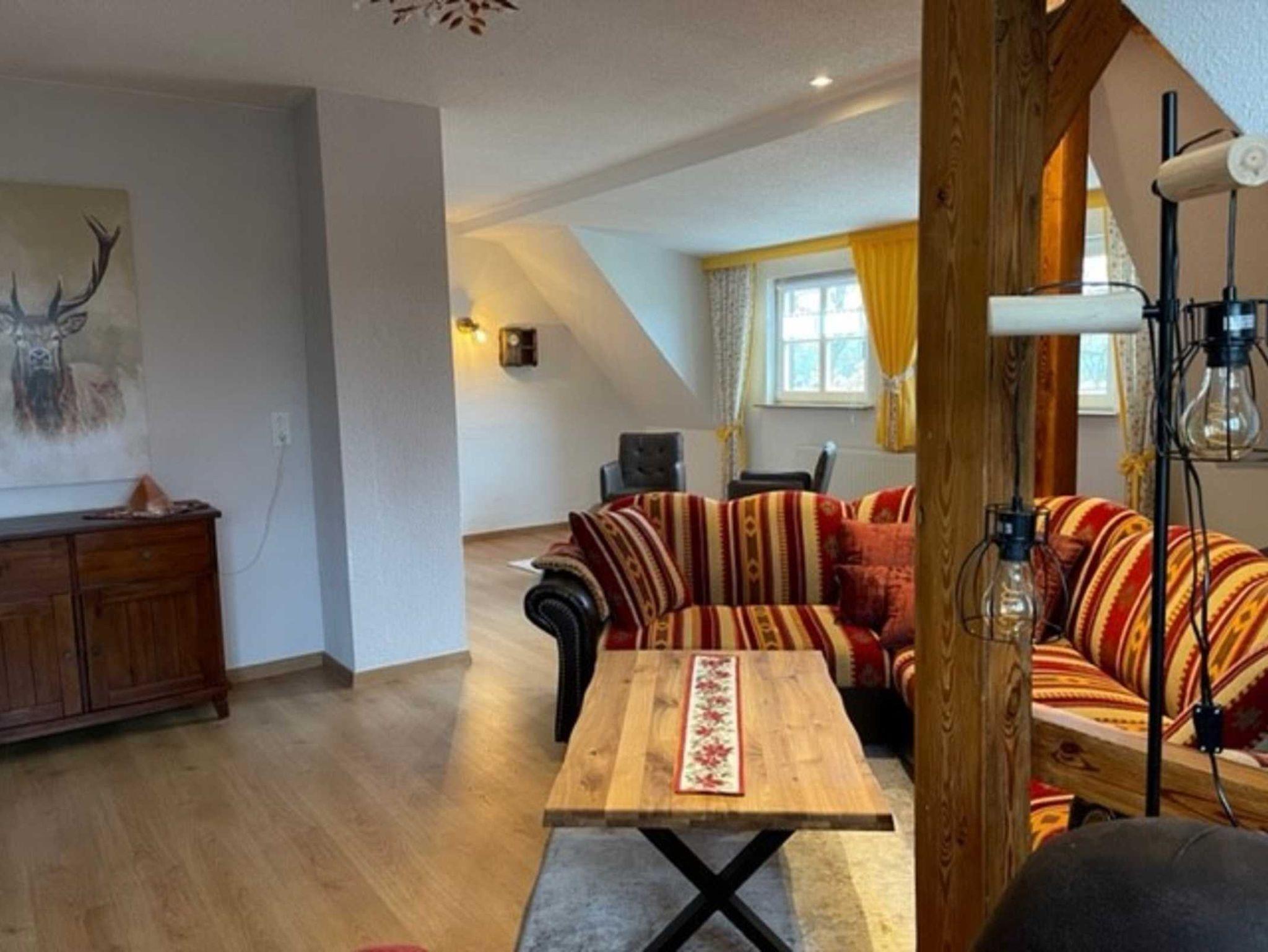 Die Ferienwohnung ist eine Nichtraucherwohnung für 4 bis 6 Personen. Mit viel Liebe zum Detail wurde das Haus Stück für Stück saniert und wieder aufgebaut. Dabei wurden viele alte historische Handwerkskünste restauriert und sind heute noch erhalten. Die Ferienwohnung befindet sich im Dachgeschoss (2.OG) einer ehemaligen Jagdvilla und wurde ursprünglich als Fachwerkhaus errichtet. Im Nebengelass stehen eine Waschmaschine und ein Trockner bereit. Ein separater Garten zur Erholung, ausgestattet mit Gartenmöbeln und Grill, befindet sich gleich neben dem Haus. Die Unterbringung von Fahrrädern ist im Nebengebäude möglich. Das Mitbringen von Haustieren ist leider nicht möglich.