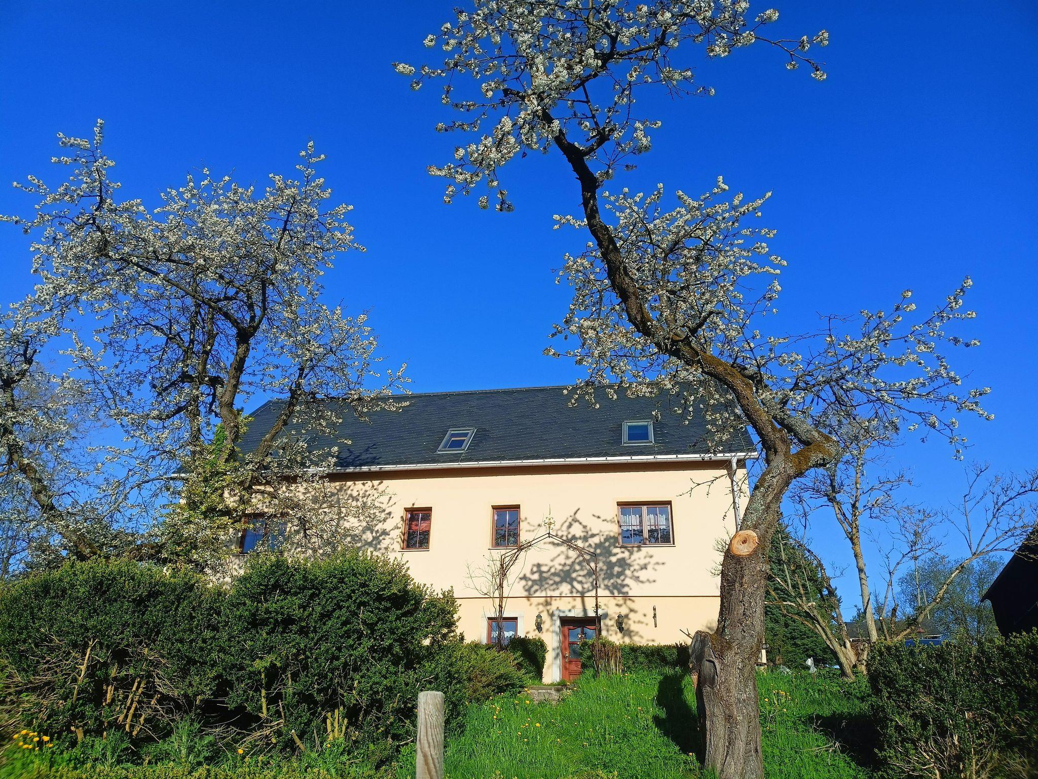 Unsere gemütliche, kleine Ferienwohnung befindet sich in Wolfsgrund (ca. 600 m üb. NN), einem kleinen Ortsteil der Gemeinde Dorfchemnitz/Sayda am Fuße des Erzgebirges. Zu unserer Ferienwohnung gehören eine Sauna, welche im Stil einer russischen Banja erbaut wurde und ganz urig mit Holz befeuert wird, sowie ein Salzwasserswimmingpool, ein eigener PKW-Stellplatz und ein stationäres und transportables Holzkohlegrill. Für unsere kleinen Gäste gibt es eine Rutsche, einen Kletterturm und Sandkasten. Auf unserem weitläufigen Gelände gibt es eine Streuobstwiese mit teilweise sehr alten Apfel-, Kirsch-, Pflaumen- und Birnenbäumen, auf welcher Schafe grasen. Der Zielbahnhof, bei einer Anreise mit der Bahn, ist Mulda oder Nassau.
