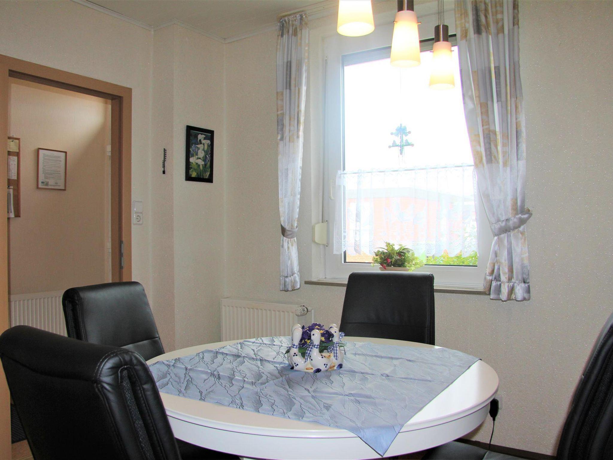 Auf ca. 56 qm erwarten Sie ein Wohn-/Esszimmer, ein Schlafzimmer mit Doppelbett, eine komplett eingerichtete Küche sowie ein Duschbad. Im Wohnzimmer steht Ihnen ein LCD-SAT-Fernseher zur Verfügung. Sollte sich das Wetter einmal nicht zum Spazierengehen eignen, liegen eine Vielzahl von Büchern, Spielen, Kartenspielen und Würfel für Sie bereit. Von einem Notebook mit DSL-Internetanschluss, mit einer gesonderten Mailadresse können Sie E-Mails verschicken und neue Fotos sofort in die Welt senden. Außerdem gibt es im Haus WLAN. Das 3. Bett ist ein Schrankbett (90x190cm) im Esszimmer, welches bei Bedarf herausgeklappt werden kann. Im Schrankbett steht eine Mikro-Musikanlage mit CD/Tape und Radio. Im Doppelzimmer finden Sie ein Kinder-Reisebett, eine Kinderbettmatratze sowie dazugehörige Zudecke und Kopfkissen. In der Garage ist außerdem ein Kinderhochstuhl vorzufinden.