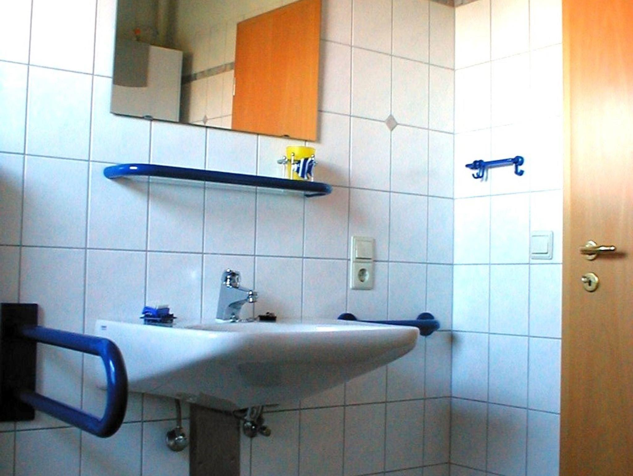 Schlafzimmer mit 2 Einzelbetten, einmal mit Pflegebetteinsatz.