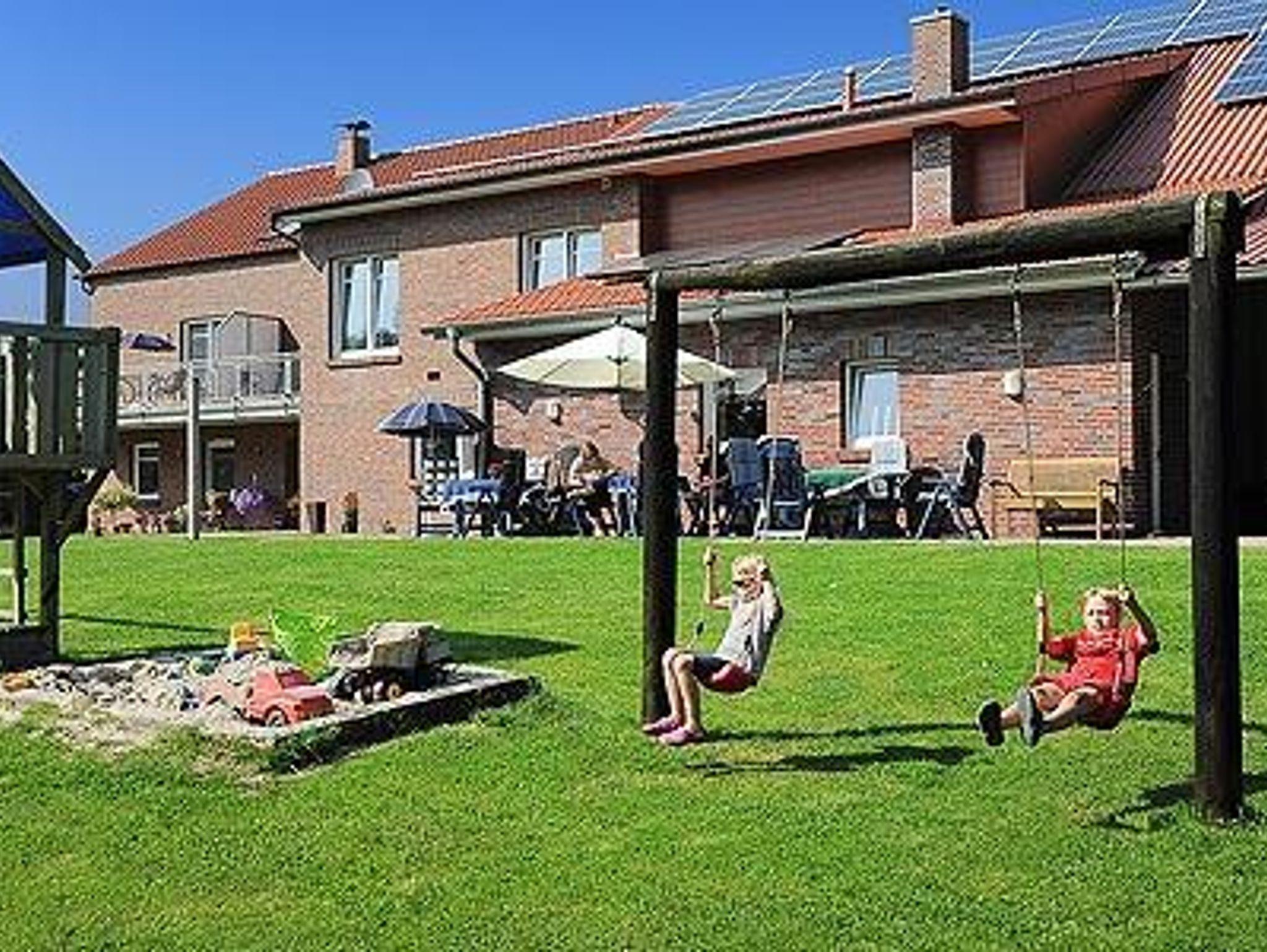 Der „Remmershof“ ist ein aktiv betriebener ostfriesischer Bauernhof und liegt nur zwei Autominuten von Dornumersiel entfernt. Vom Hof aus blicken Sie auf Weiden und Felder. Die Lage ist ideal für Spaziergänge, Radtouren und Ausflugsfahrten. Auf dem Hof leben Hühner, Enten, Gänse, Ziegen, Schweinchen und Ponys. Ponyreiten wird auf dem Reitplatz angeboten. Für all unsere Gäste gibt es genügend Liege- und Spielwiesen. Neben einer großen Terrasse gibt es auch einen Aufenthaltsraum mit Kamin. Bei uns bekommen Sie frische Eier von glücklichen Hühnern und leckeren Rapshonig. Für unsere kleinen Gäste gibt es viel Platz zum Spielen und Toben. Verschiedene Spielgeräte wie Schaukeln, Sandkasten, ein großes Trampolin, Go-Karts, Tischkicker, Tischtennisplatte, Holzpferd, uvm. stehen zur freien Verfügung. Für jede Wohnung gibt es auf Wunsch ein Reisebettchen und einen Hochstuhl. Max. 1 kleines Hund ist erlaubt und kann dazu gebucht werden. Es sind nur Hunde als Haustiere erlaubt