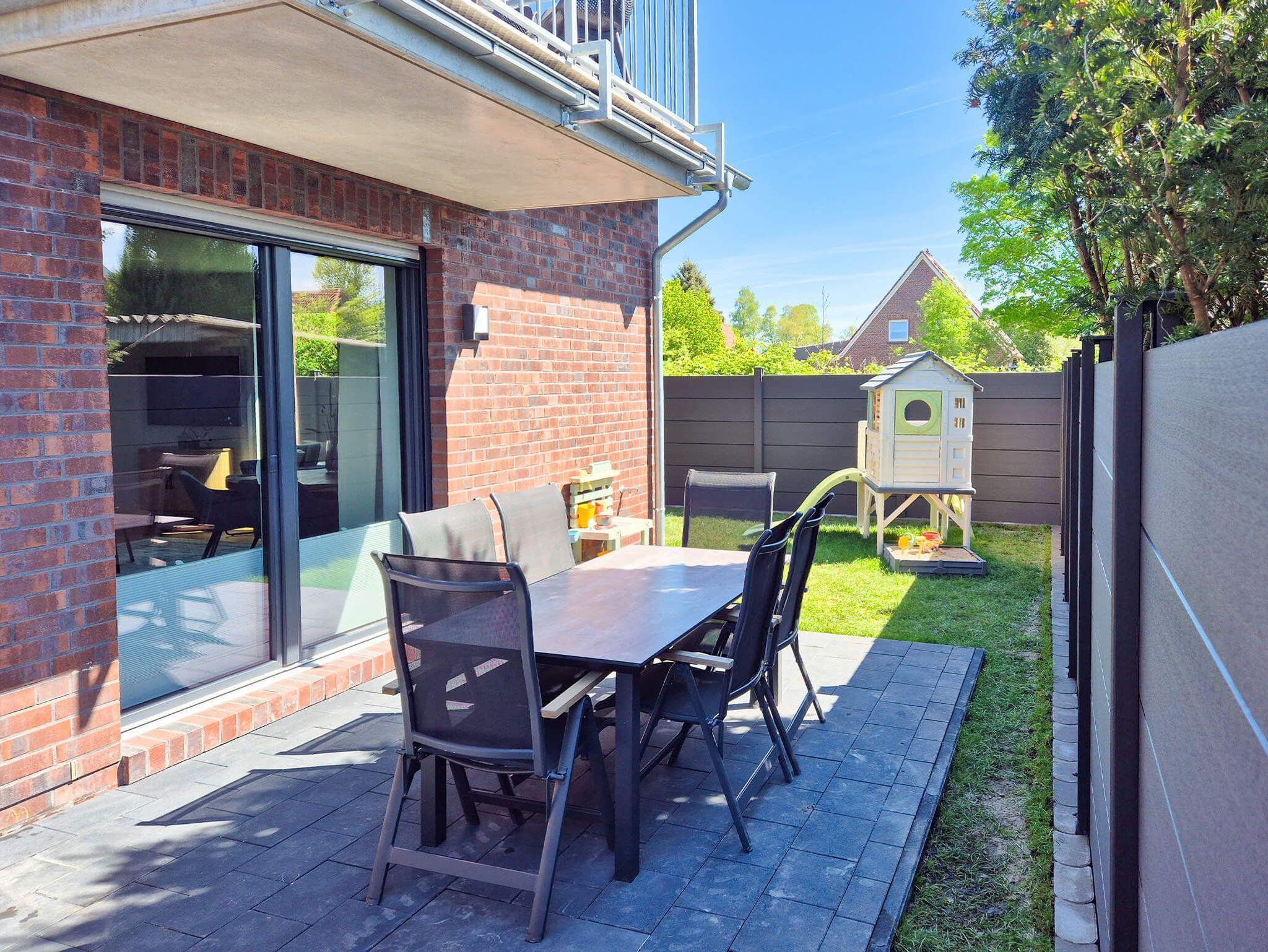 Die 3 Erdgeschosswohnungen verfügen über einen eigenen Garten, der komplett eingezäunt ist (Hunde können frei laufen) und zusätzlich gibt es jeweils einladende Sitzgelegenheiten und Einrichtungen für die Kinder. Die Obergeschosswohnung ist mit einem Balkon ausgestattet.