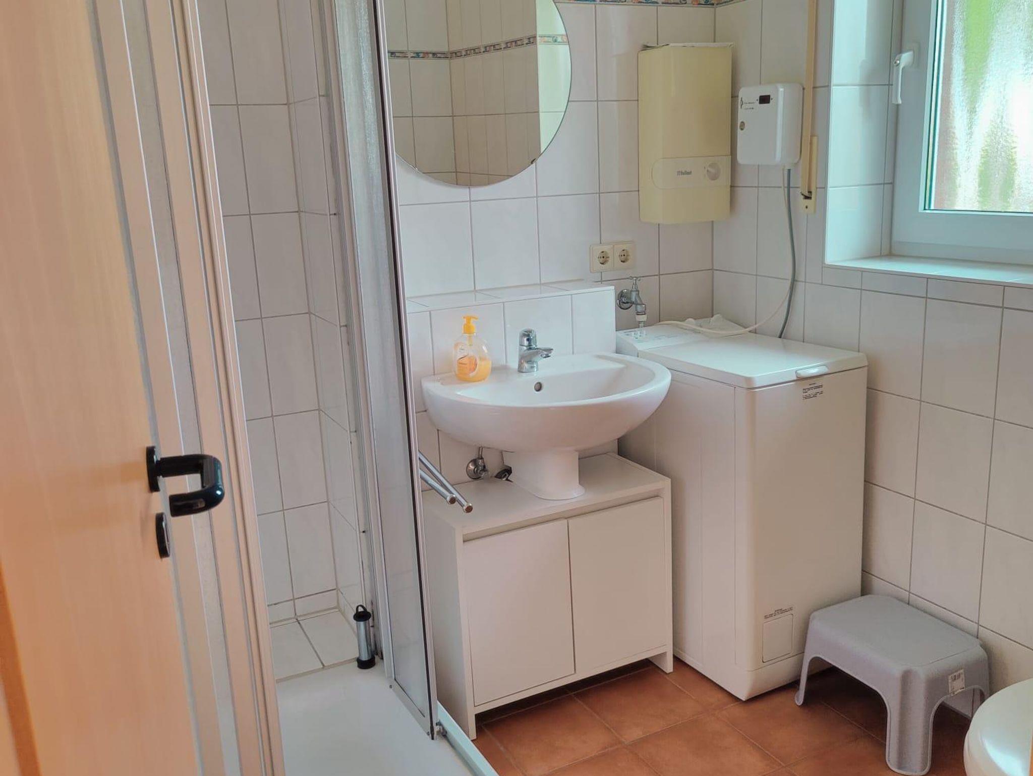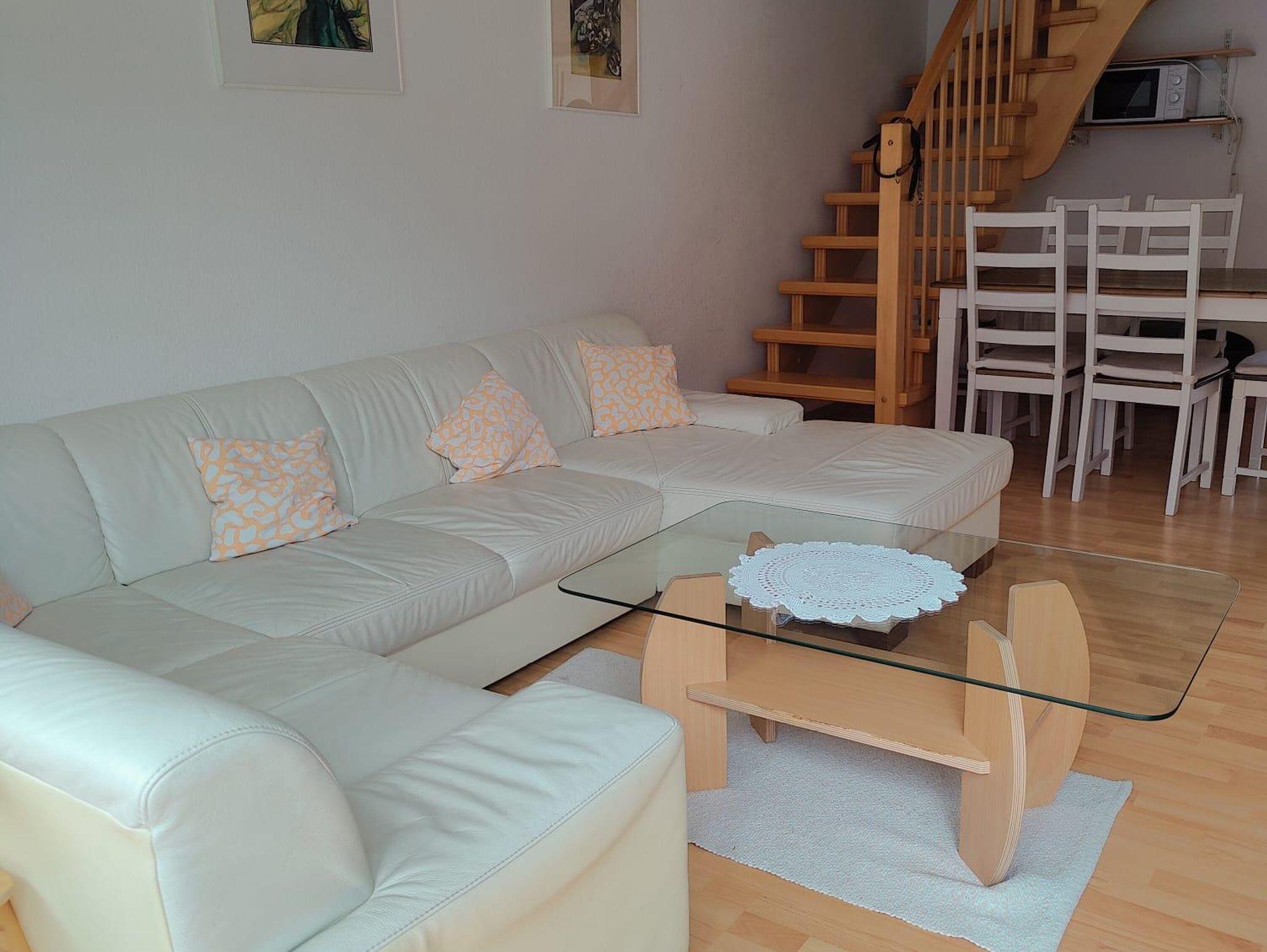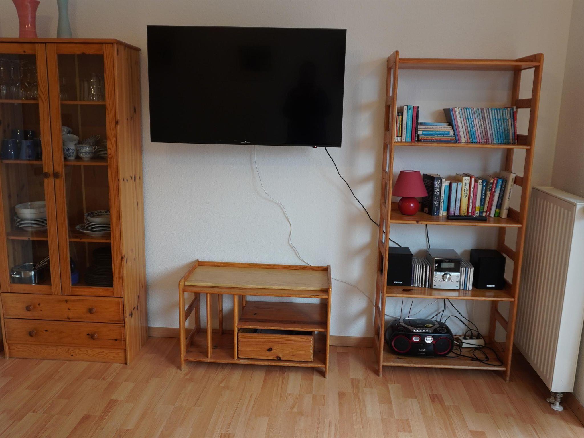 Im Erdgeschoss finden Sie einen kombinierten Wohn- und Essbereich, mit Flach-TV und einem Bad mit Dusche und WC. Für unsere kleinen Gäste ist ein Kinderstuhl vorhanden. Auf der angrenzenden Terrasse können Sie in den sommerlichen Abendstunden einfach mal runterkommen – Freilenzen eben!