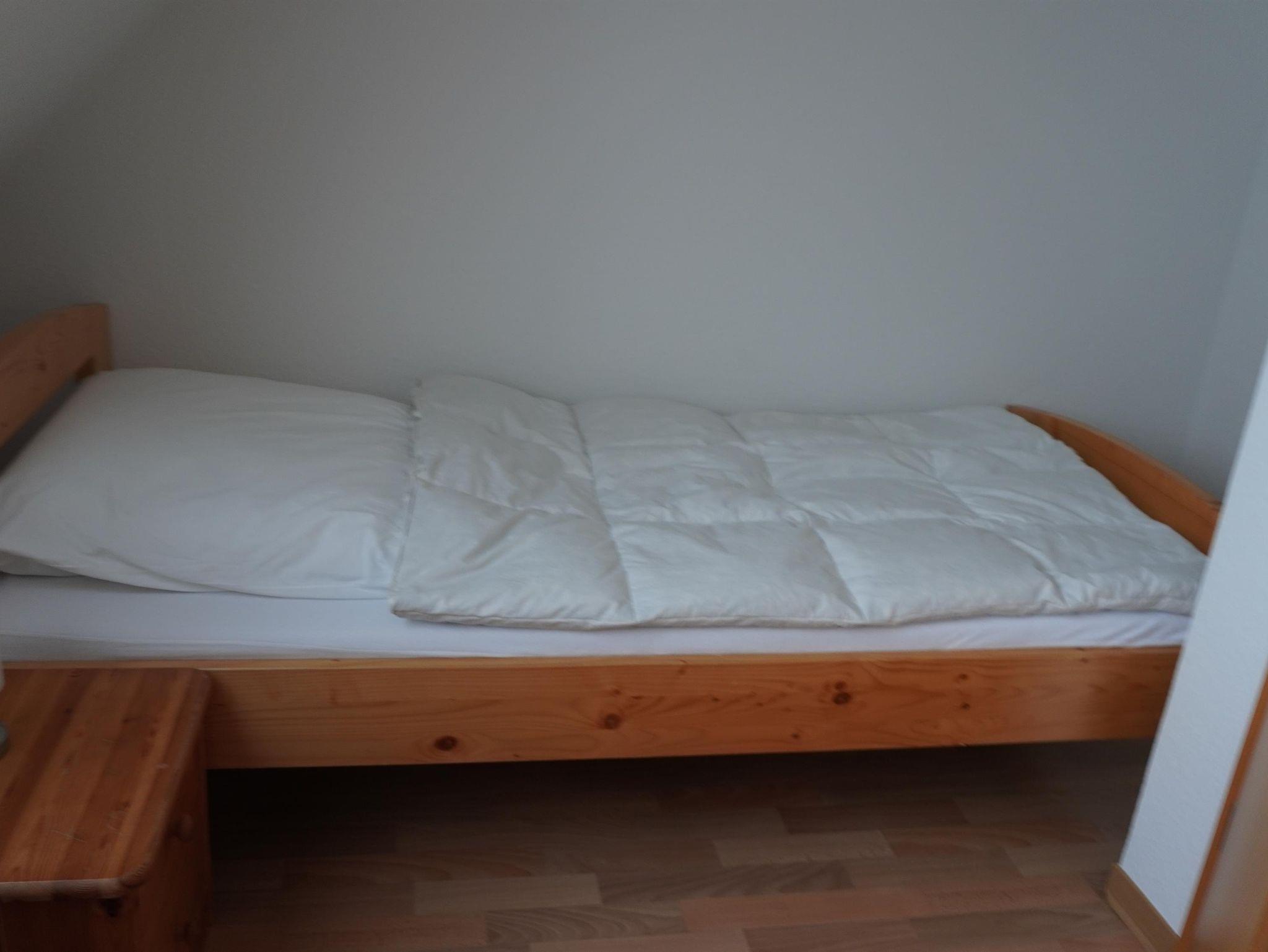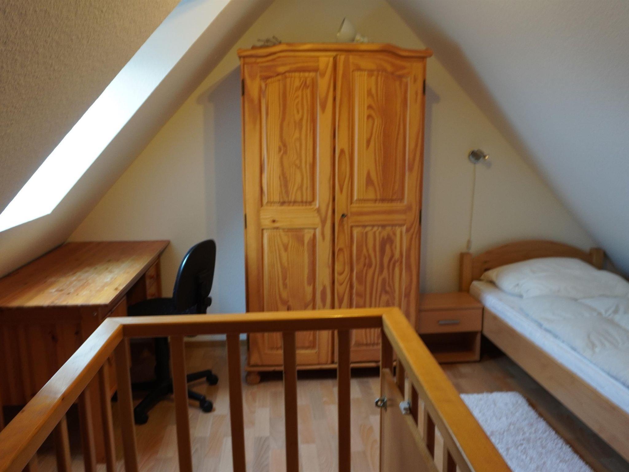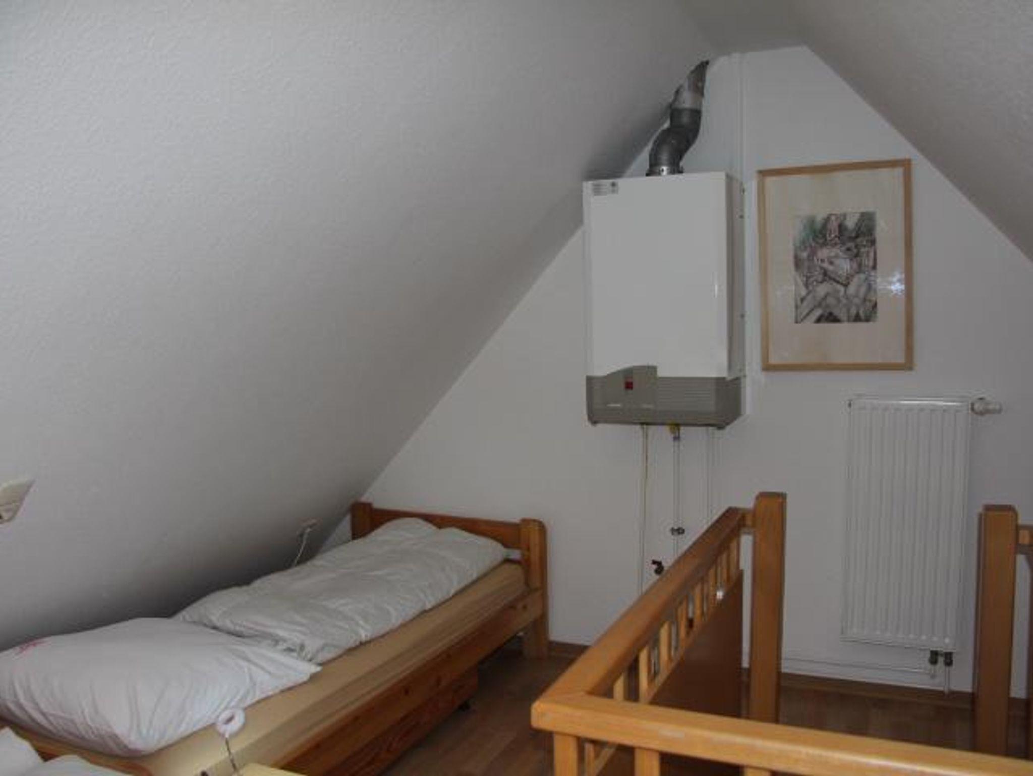 Im Obergeschoss finden Sie Ihre Schlafdomizile, sowie ein separates WC. Es erwartet Sie neben einem Schlafzimmer mit zwei Einzelbetten, ein weiteres Schlafzimmer mit Doppelbett, sowie einem Kinderbett.