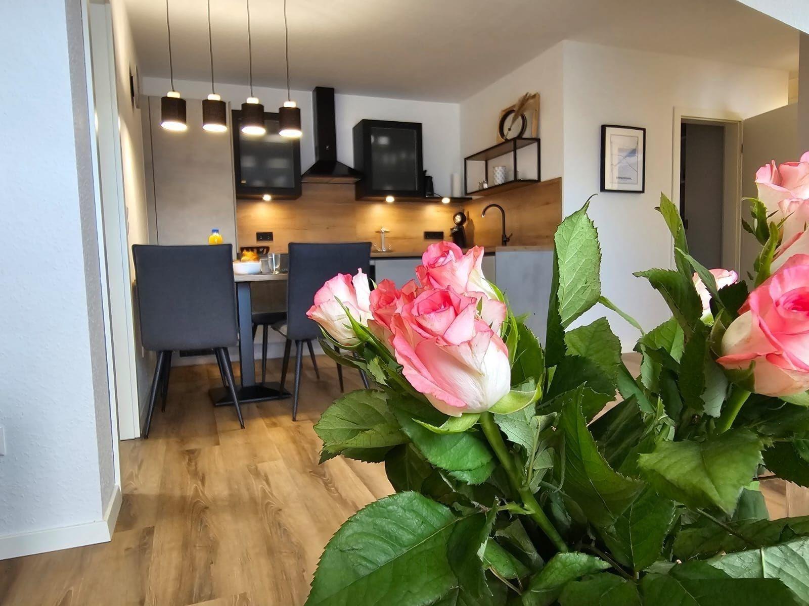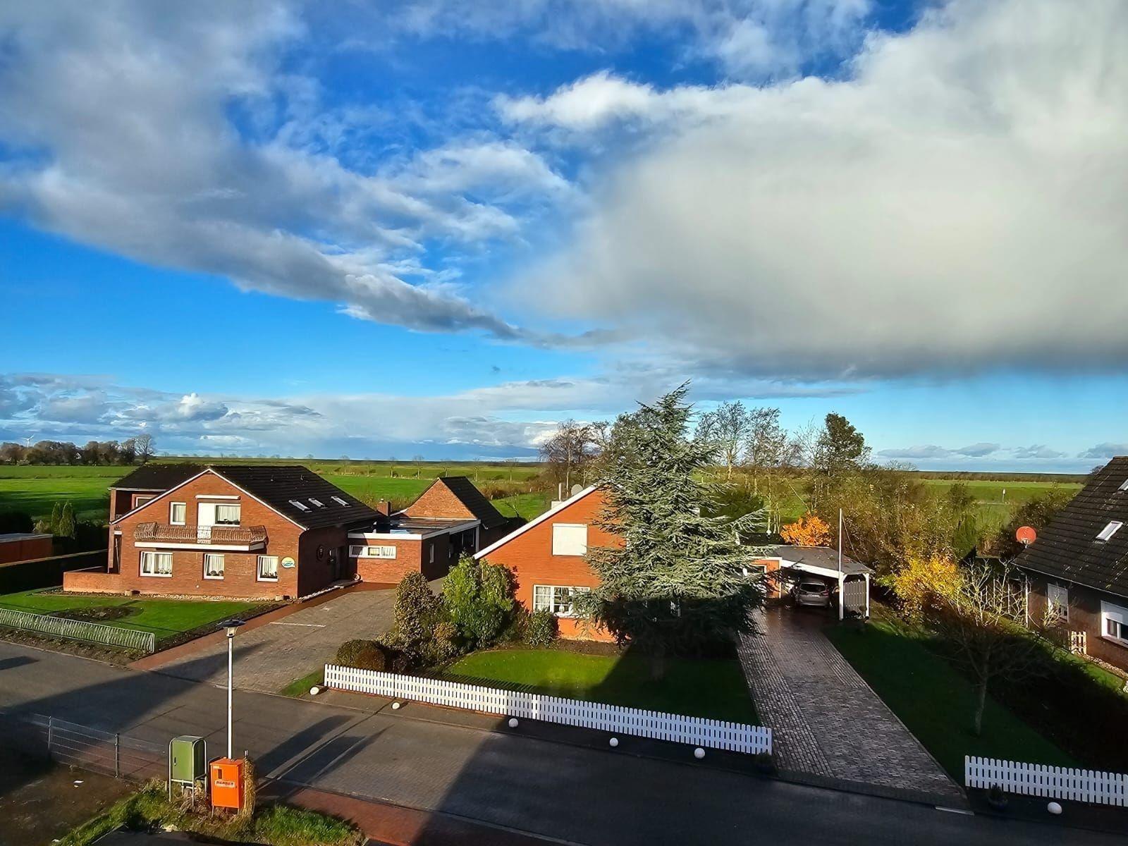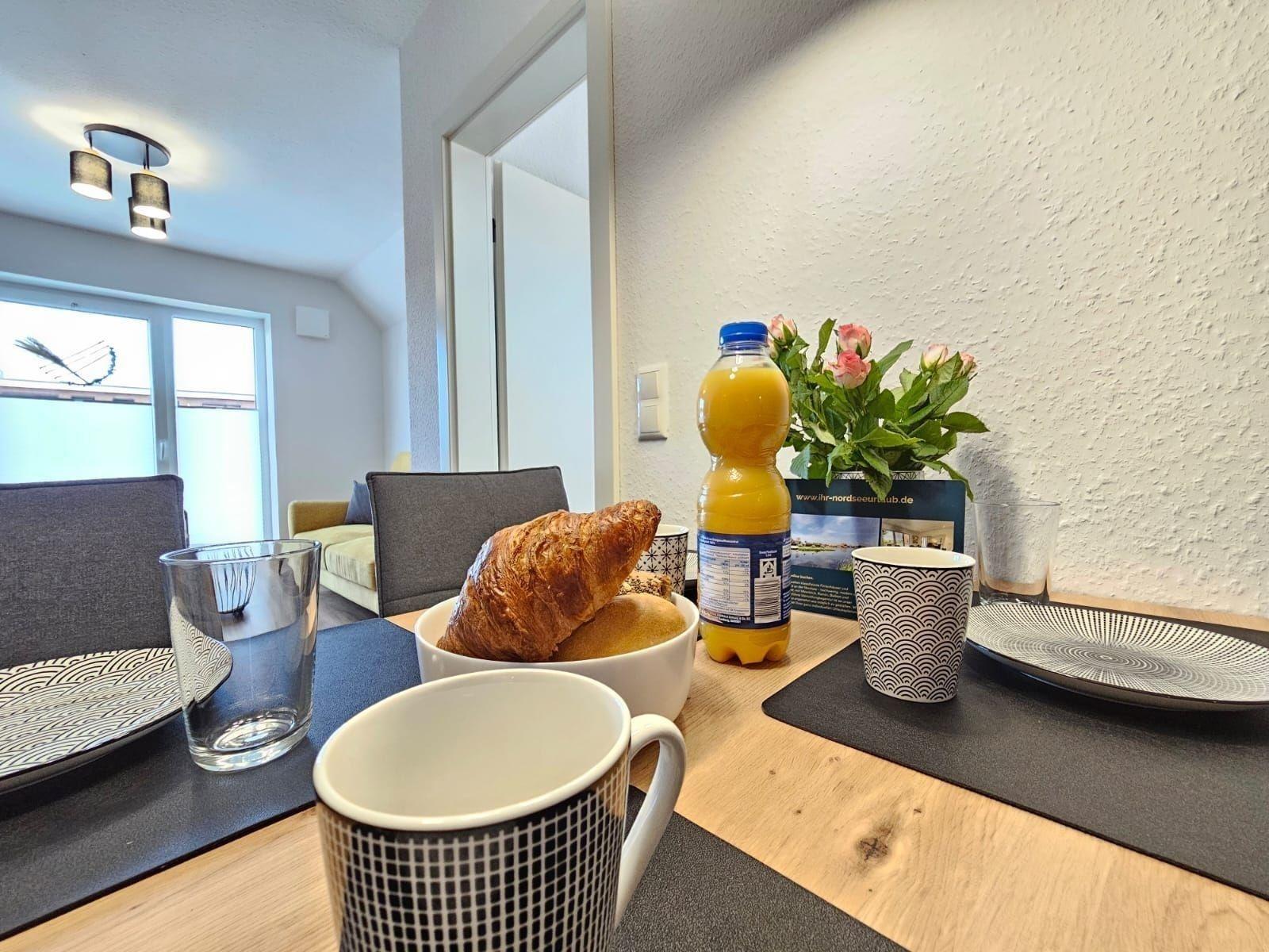 Gemütliche Ferienwohnung in Dornum mit Balkon, moderner Küche und E-Ladestation für Fahrräder.