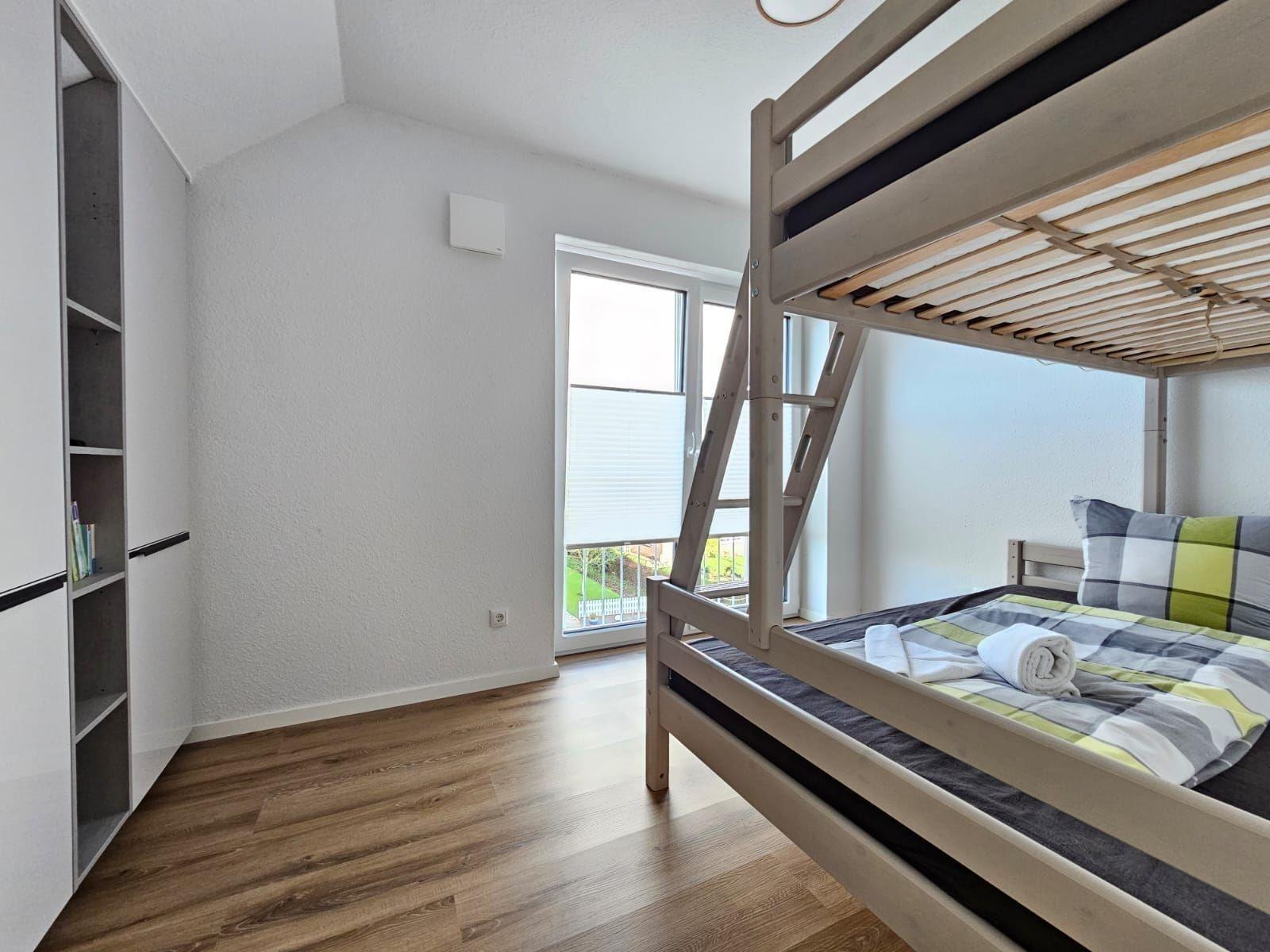 Die Ferienwohnung bietet ein modernes und komfortables Ambiente, ideal für Entspannung und Erholung. Ein Schlafzimmer mit einem Doppelbett, ein Wohnschlafzimmer mit zwei Einzelbetten sowie eine bodengleiche Dusche im Badezimmer sorgen für höchste Flexibilität. Die offene Küche ist mit einem Geschirrspüler, Elektro-/Gasherd, Backofen, Mikrowelle, Kühlschrank, Kaffeemaschine und Toaster ausgestattet, was das Kochen zum Vergnügen macht. WLAN ermöglicht zudem eine stets verfügbare Internetverbindung.