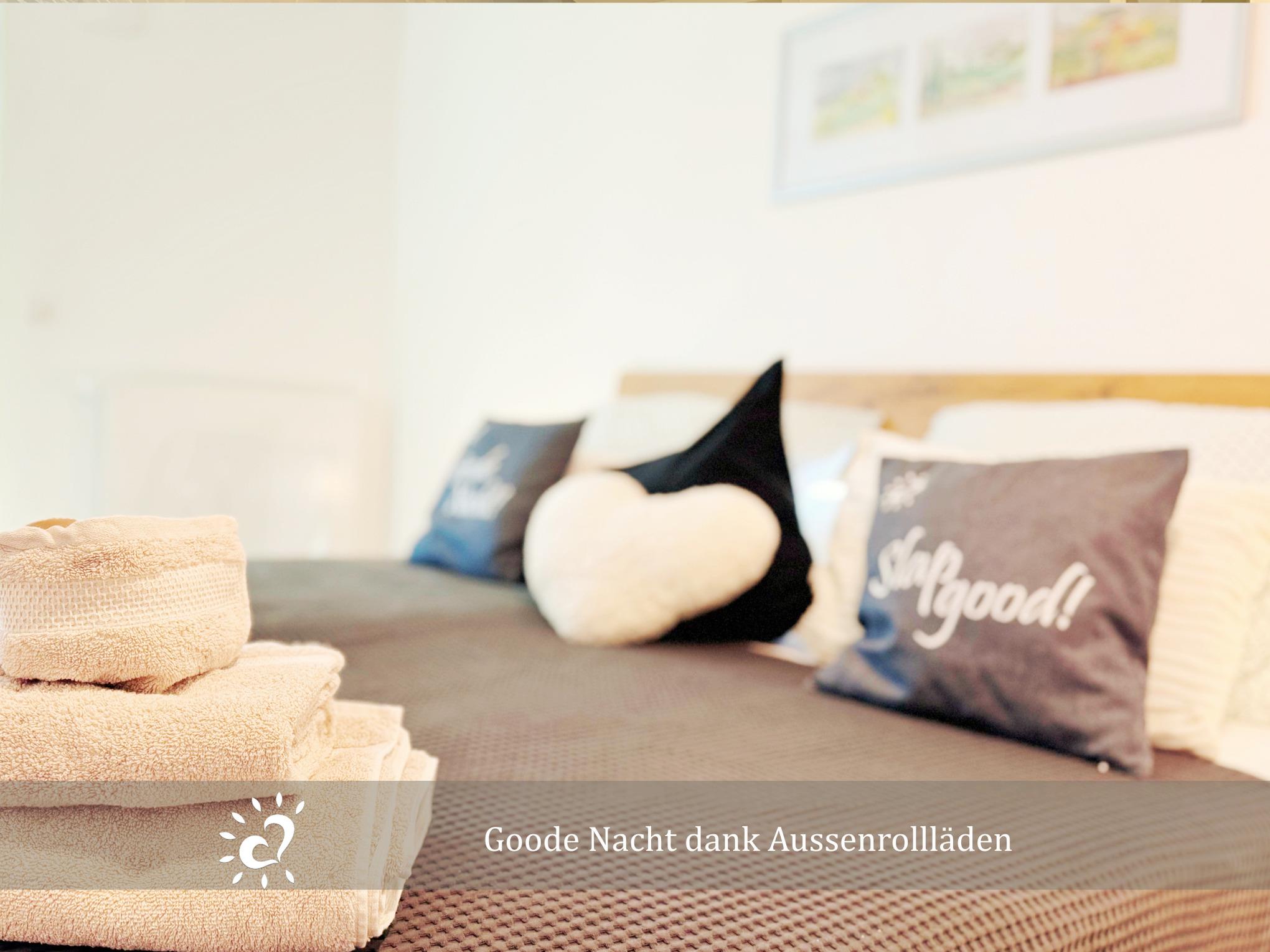Diese modern eingerichtete Ferienwohnung bietet dir genügend Platz für 4 Personen. Zwei gemütliche Schlafzimmer – ein Doppelbett (180 x 200?cm) und ein kleines Doppelbett (150 x 200?cm) – sorgen dafür, dass du morgens ausgeschlafen und dank Außenrollläden erholt startest.