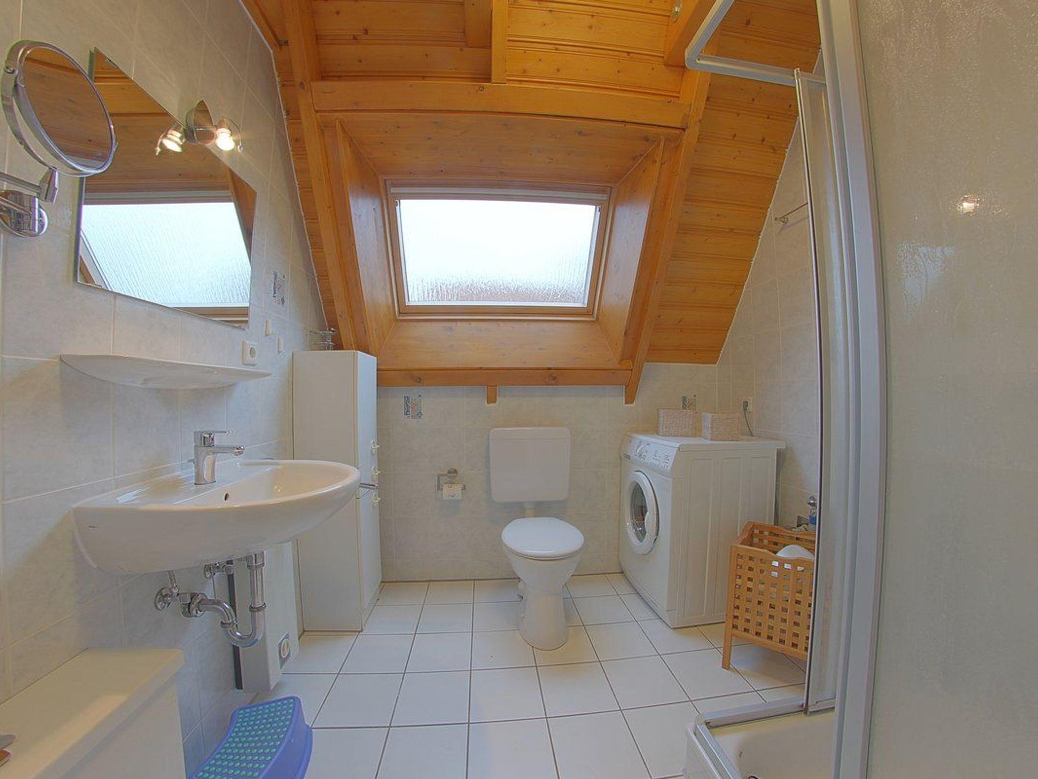 Im Erdgeschoß gibt es ein Schlafzimmer mit Doppelbett und ein helles Duschbad.
