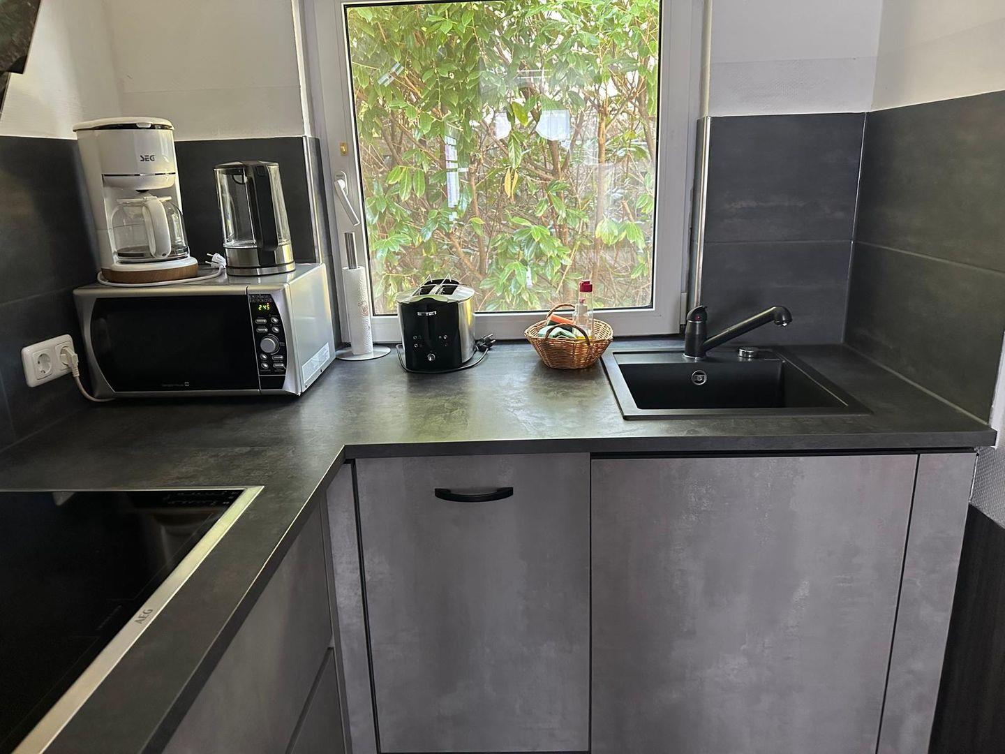 - Komplett eingerichtete Küche (Ceranfeld, Heißluftherd, Kühlgefrier-kombination, Spülmaschine etc.)