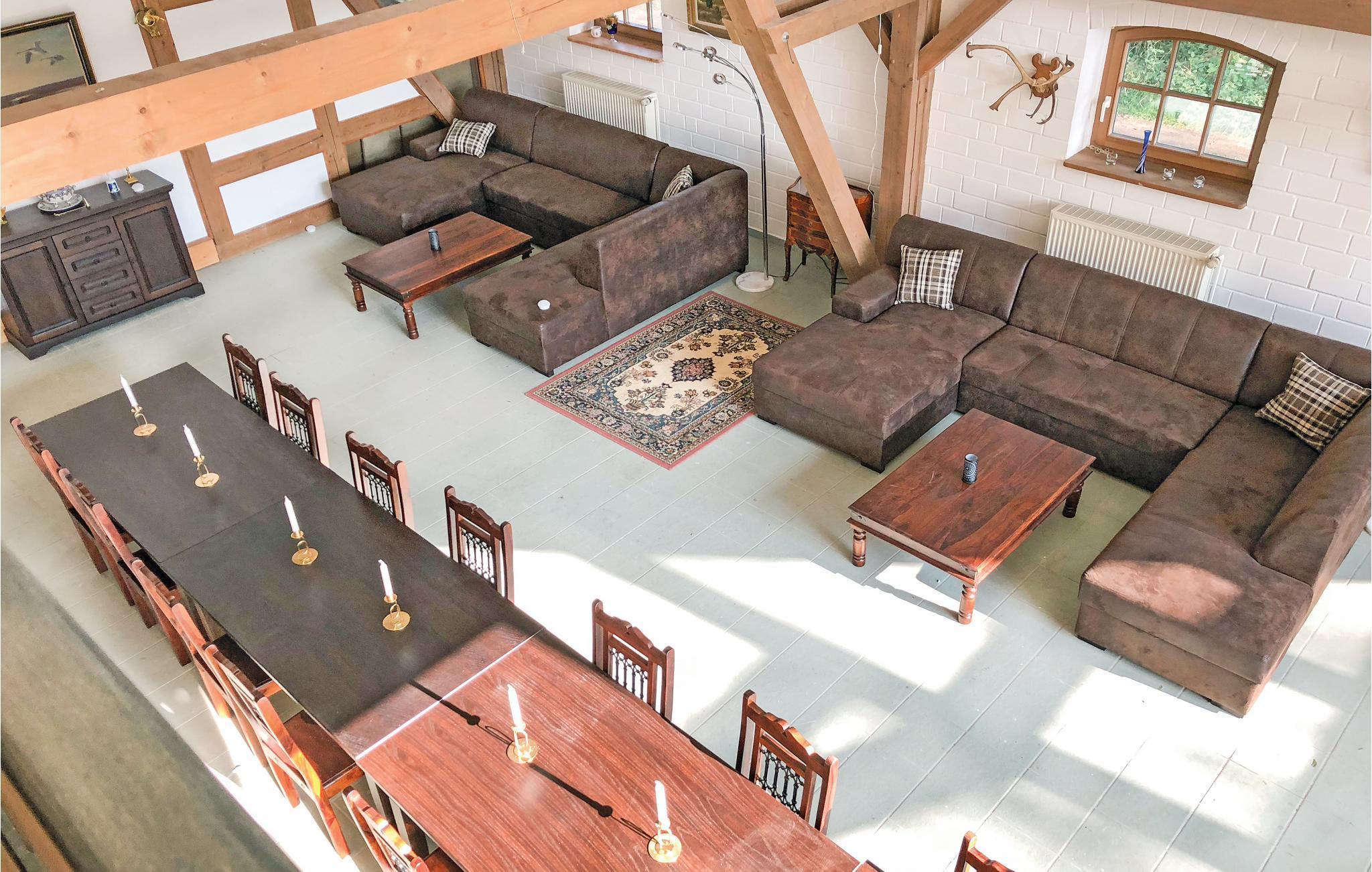 Der gemeinschaftliche Raum ist großzügig und hell gestaltet. Hier können Sie ebenfalls Businessmeetings, Teambuilding-Treffen oder Workshops durchführen. Dank der historischen und rustikalen Einrichtung im Landhausstil werden Sie sich hier sofort wohlfühlen. Hier leben Sie in einem ganz besonderen Landhaus, das aus seiner Historie heraus eine neue architektonische Gestalt und Funktion gefunden hat. Hier entsteht die wahre „Landlust“.
