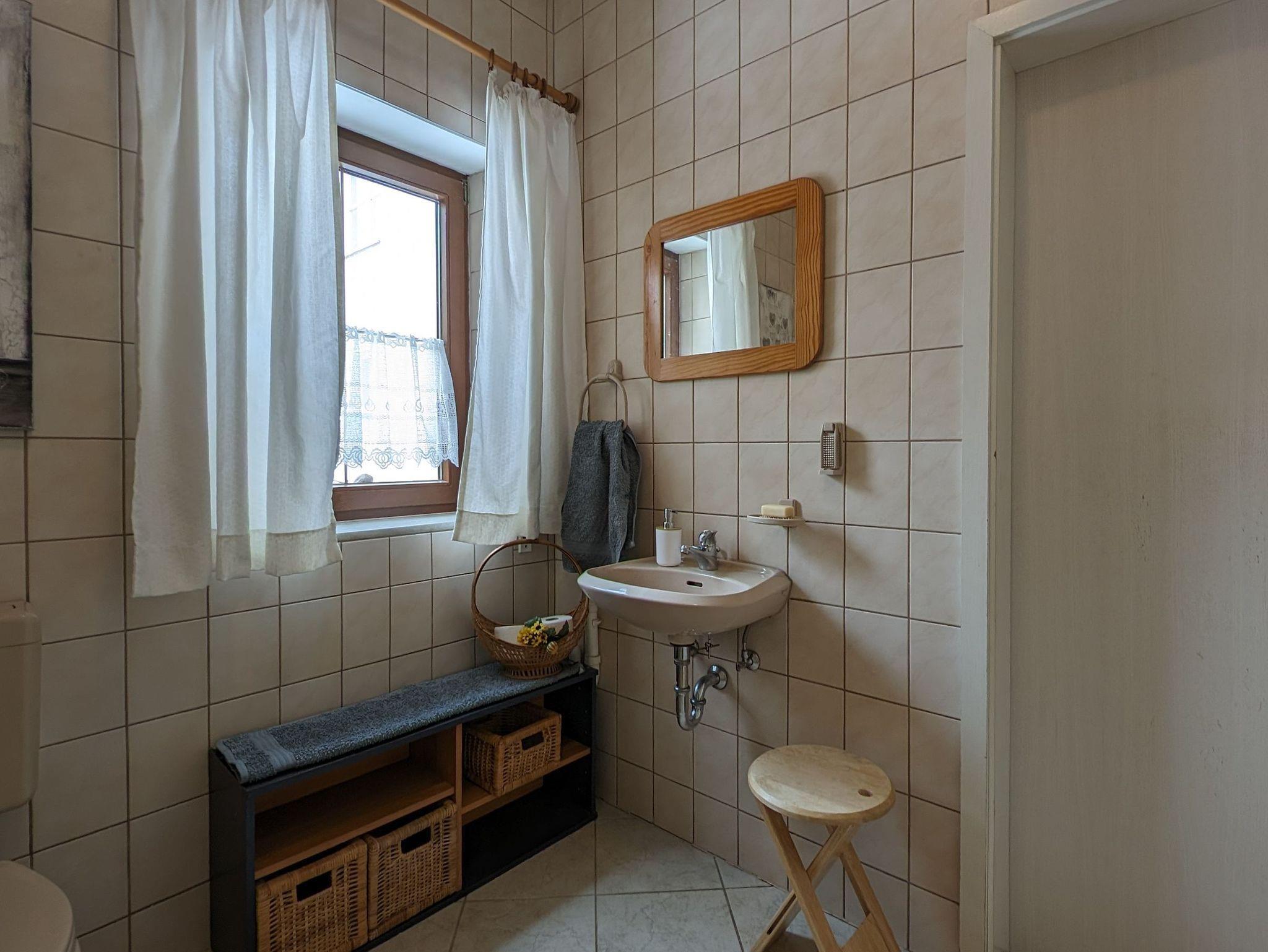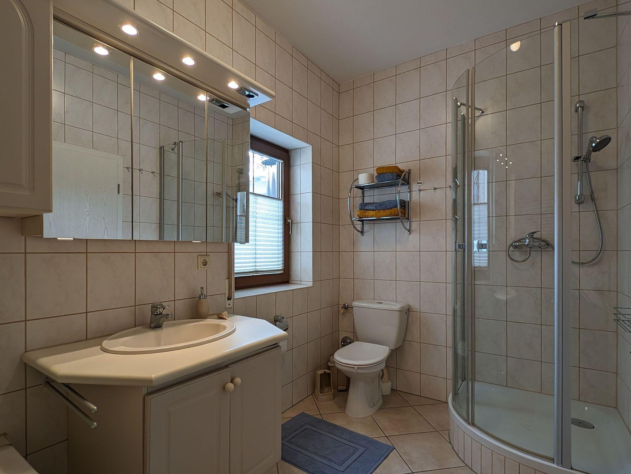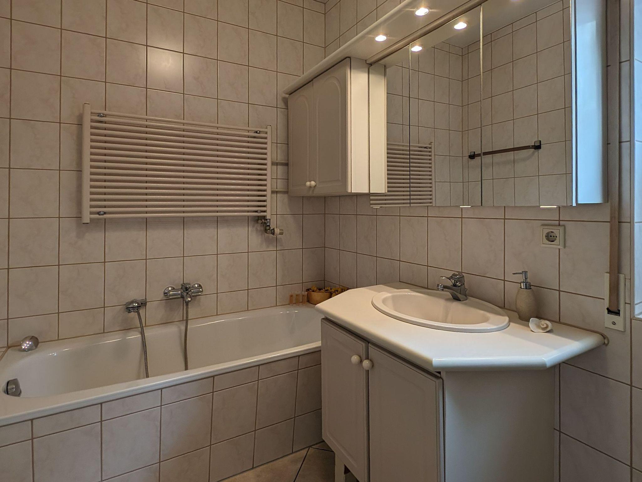 Das großzügige Badezimmer ist mit einer Dusche und einer Badewanne, sowie einem Waschbecken und ausreichend Abstellmöglichkeiten ausgestattet. Zudem befindet sich in der Wohnung ein Gäste-WC.