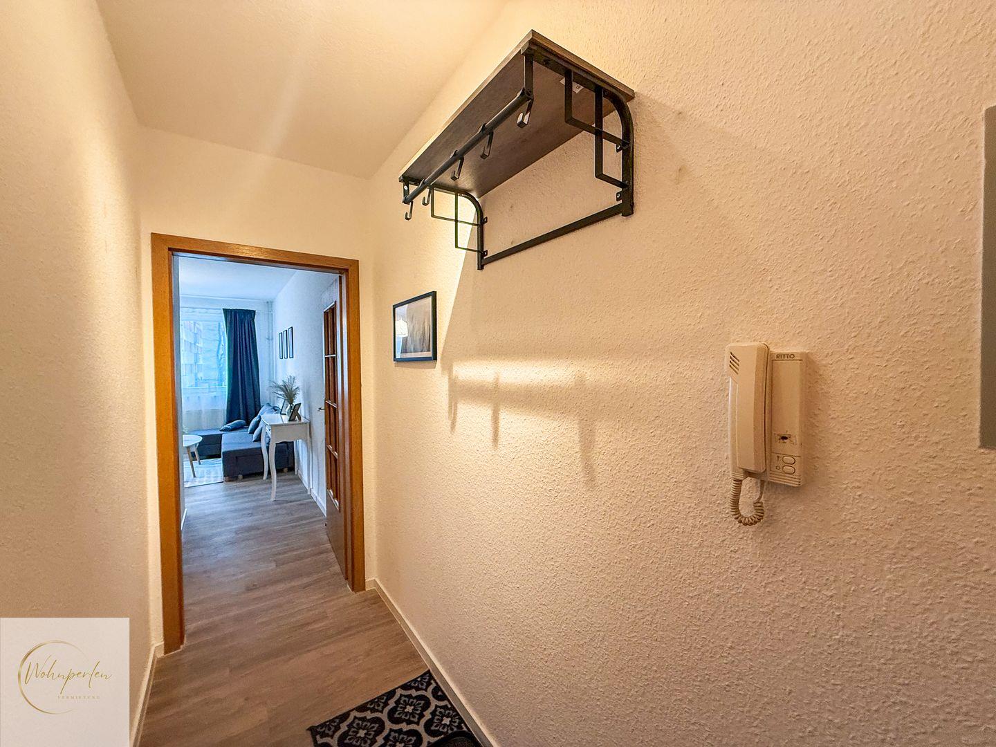 Das Apartment verfügt über zwei Zimmer, darunter ein separates Schlafzimmer mit Bodenbelag aus Laminat, das für ein angenehmes Wohnklima sorgt. Im hellen Wohnzimmer erwarten Sie eine gemütliche Sofaecke sowie moderne Unterhaltungselektronik: Zwei Kabel-TVs im Format von 44 bis 55 Zoll bieten Ihnen umfangreiche Möglichkeiten, sich nach einem erlebnisreichen Tag zu entspannen. Die digitale Ausstattung umfasst ferner eine Highspeed-Internetverbindung mit WLAN ab 100 Mbit/s, die sowohl für private als auch berufliche Zwecke höchste Zuverlässigkeit gewährleistet. Arbeiten oder lernen ist mit dem vorhandenen Schreibtisch ebenso komfortabel möglich.
