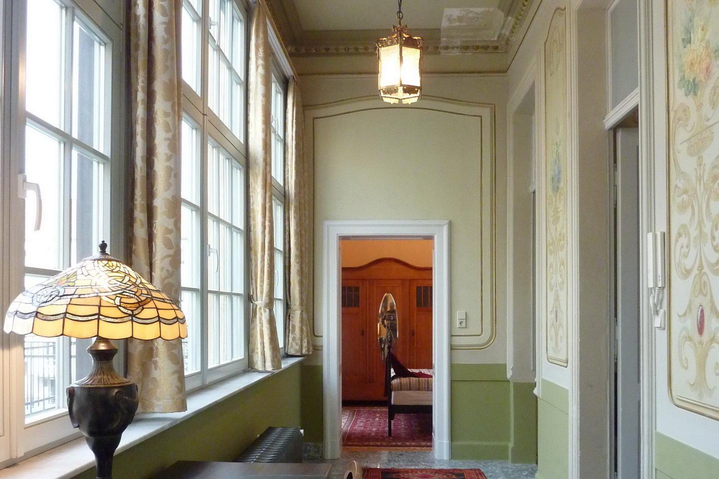 Genießen Sie die lichtdurchflutete Galerie mit zauberhafter historischer Farbfassung, Balkone mit Gartenblick und das antike Mobiliar in den großen Räumen. Sorgfältig restauriert und mit moderner Technik ergänzt, lässt es sich in der Villa Haniel stilvoll und komfortabel wohnen.