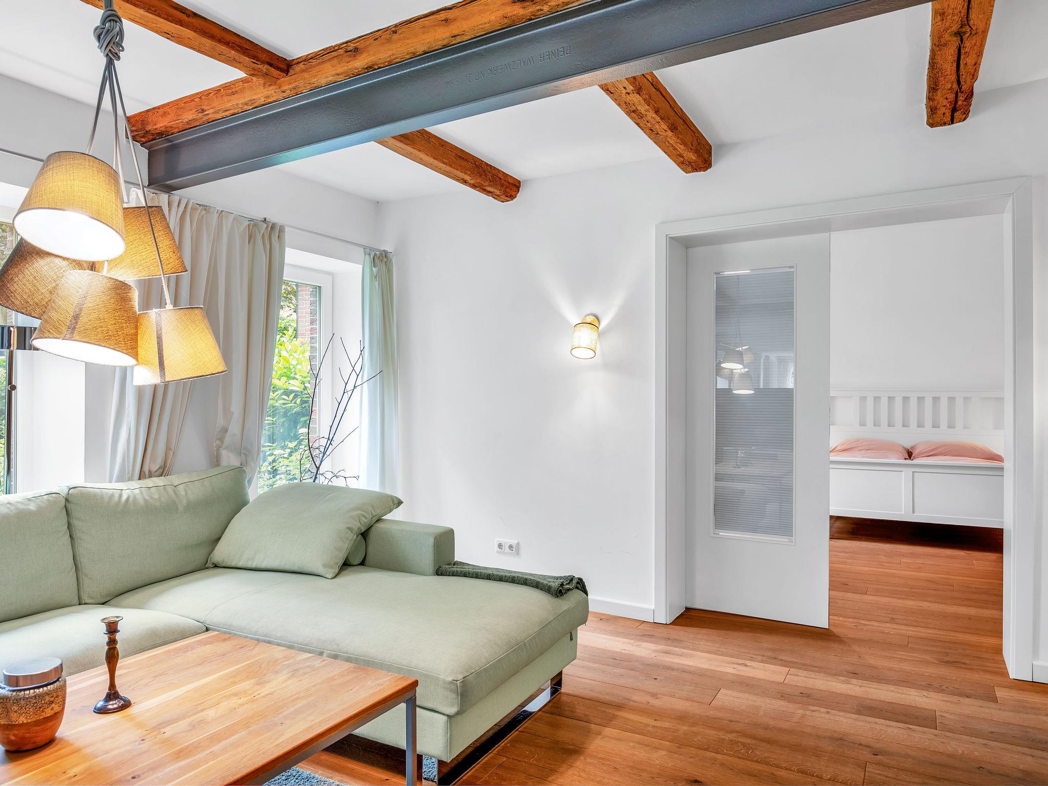 "Elbdomizil", 5-Zimmer-Haus 180 m2 auf 2 Stockwerken. Luxuriös und stilvoll eingerichtet: offenes grosses Wohn-/Esszimmer mit offenem Kamin und Sat-TV (Flachbildschirm). Ausgang zum Garten, zur Terrasse. 1 Zimmer mit 1 Diwanbett und 1 Doppelbett. 1 Zimmer mit 1 Doppelbett. Grosse, offene Küche (5 Glaskeramikplatten, Toaster, Wasserkocher, Mikrowelle, elektrische Kaffeemaschine, Kochinsel). Dusche/WC. Heizung. Obergeschoss: 1 Zimmer mit 1 Doppeldiwanbett und 1 Doppelbett. 1 Zimmer mit 1 Doppelbett. Bad/Dusche/WC, Sauna. Grosser Garten. Terrassenmöbel, Gartengrill. Auf den Garten. Zur Verfügung: Internet (DSL/LAN, gratis). Bitte beachten: Nichtraucher-Haus. Maximal 2 Haustiere/Hunde erlaubt. Rauchmelder. Flexibilität bei der Bettenaufteilung: Es stehen mehr Schlafmöglichkeiten zur Verfügung als die maximal zugelassene Personenzahl, diese darf dennoch nicht überschritten werden.