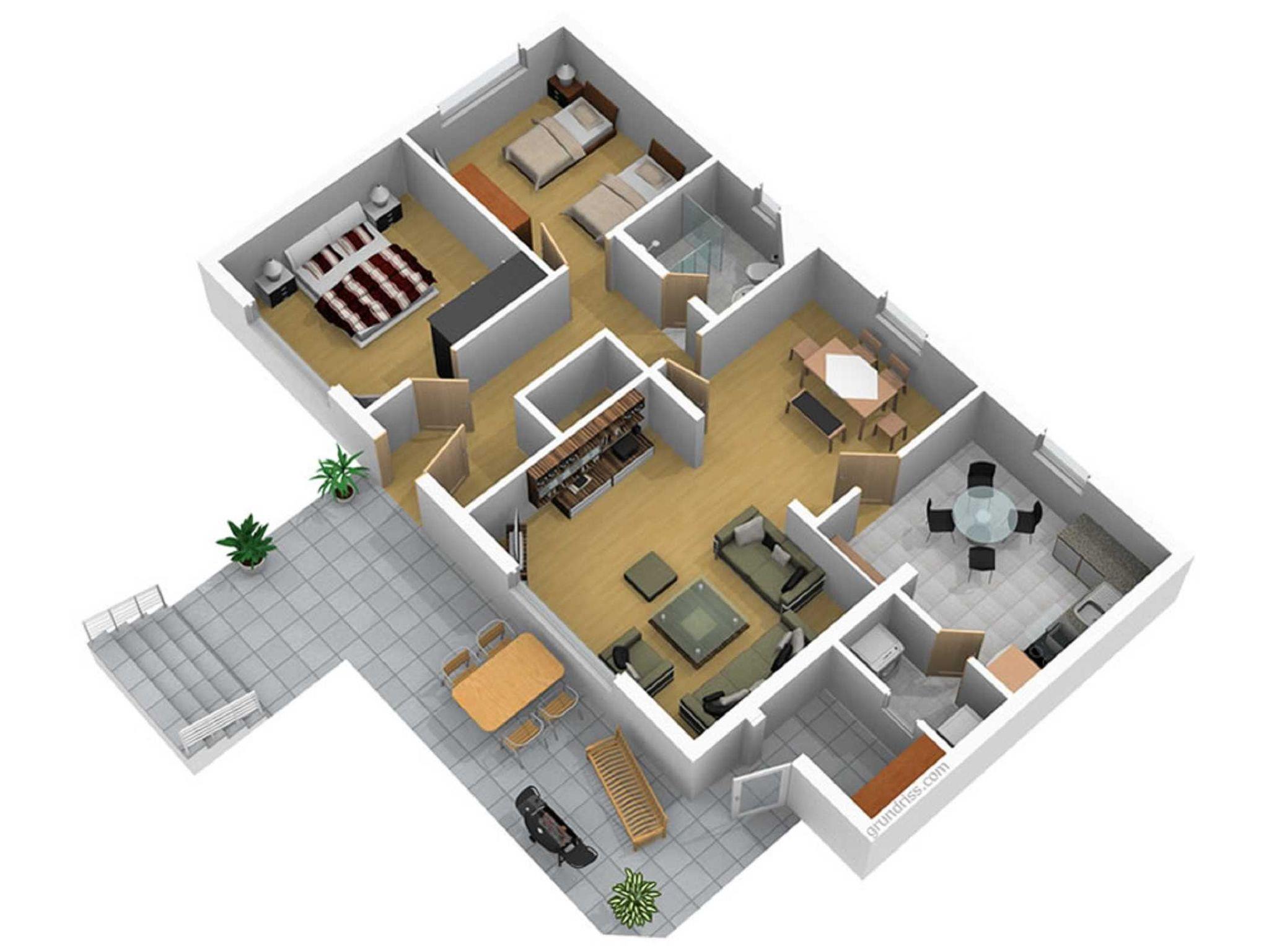 Ausgestattet mit zwei Schlafzimmern. 4 Betten 2m x 0,90m zusammenschiebbar.
