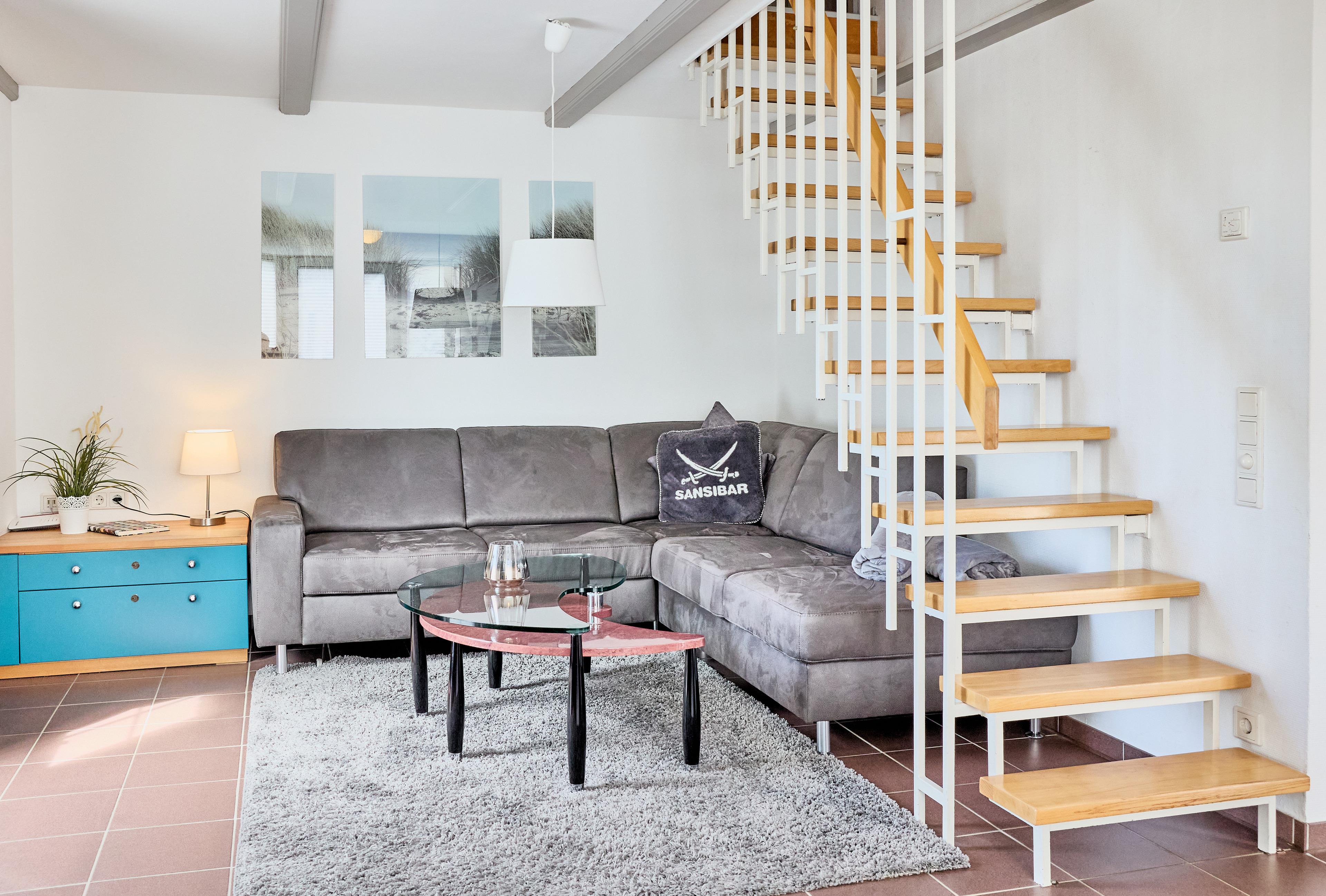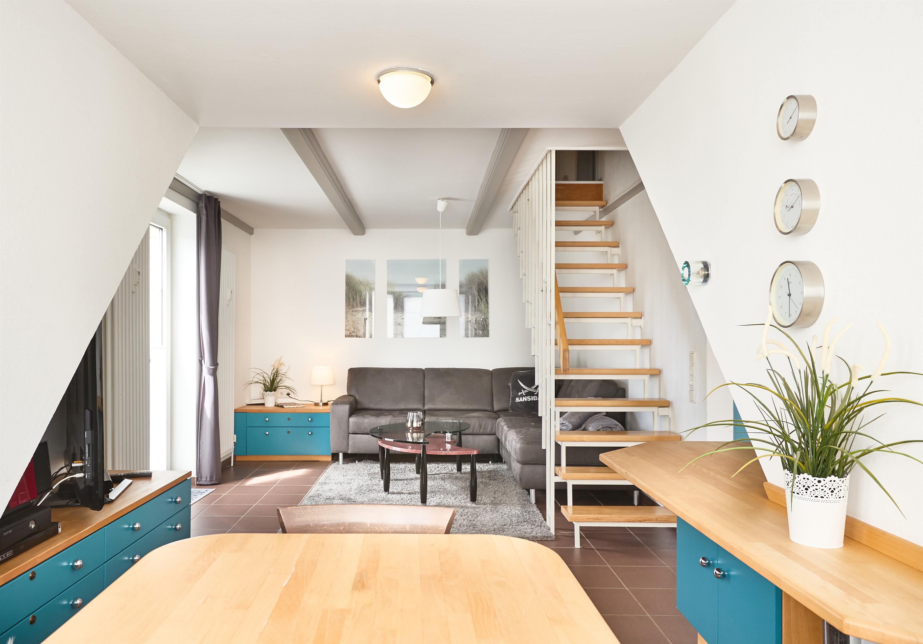 Liebe Nordseeurlauber, aufgepasst! Unsere Ferienresidenz Steinmarne beherbergt eine ca. 53 m² große Wohnung, ein perfekter Rückzugsort für Ihren Cuxhaven-Urlaub. Die stilvolle Einrichtung und die offene Küche schaffen eine einladende Atmosphäre im Wohnbereich. Entspannen Sie in unserem ausgebauten Erker mit gemütlicher Sitzbank und einer großzügigen Couch.