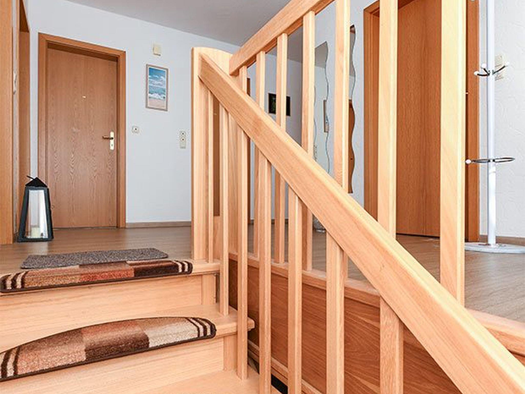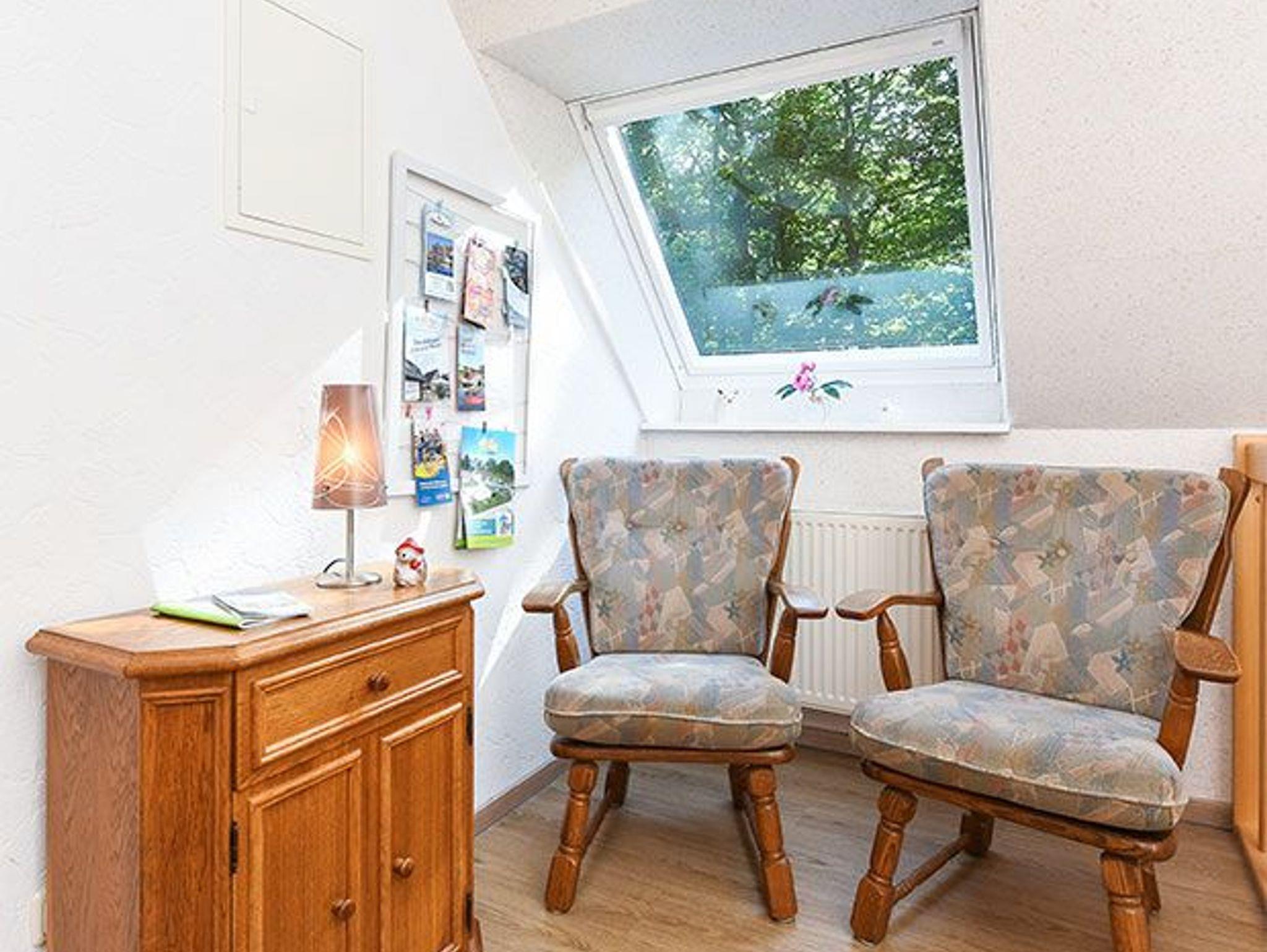 Größe ca. 90 Quadratmeter, Wohnzimmer, Küche, Schlafzimmer, zweites separates Schlafzimmer/Kinderzimmer, Badezimmer mit Badewanne, Dusche und Waschtisch, separates WC mit Waschtisch, Obergeschoss, optimal für 2 bis 4 Personen.