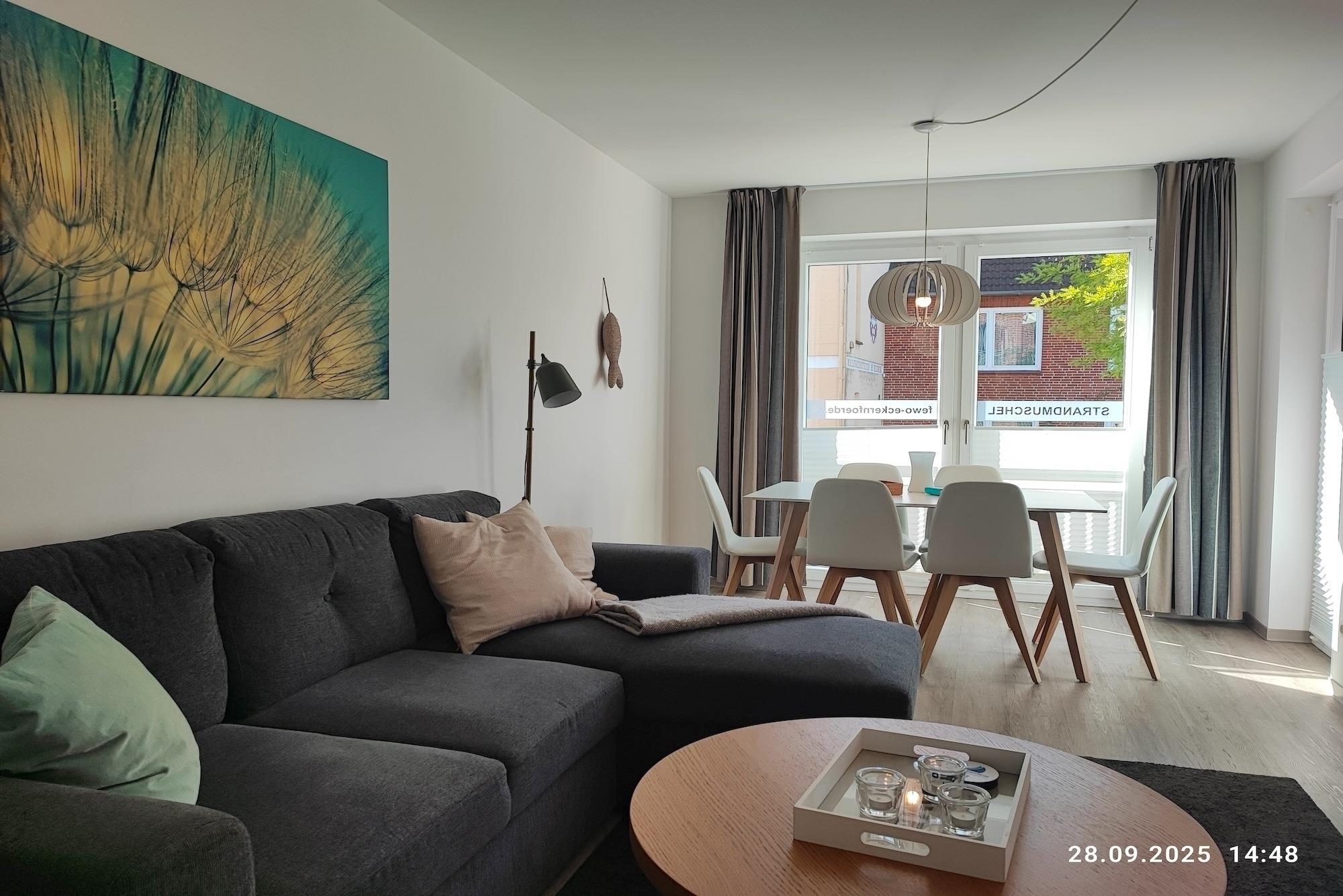Die Ferienwohnung Strandmuschel bietet 77m² Komfort direkt am Hafen von Eckernförde, ideal für Familien und Paare.