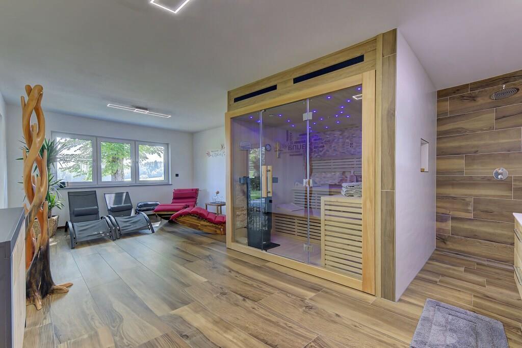 • Das Landhaus Rachelblick ist ein modern und luxuriös eingerichtetes Ferienhaus im Bayerischen Wald und bietet Platz für bis zu 6 Personen. Auf zwei Etagen lässt es sich wunderbar entspannen und von der Hektik des Alltags entfliehen. Für ein bisschen Wellness im Ferienhaus-Urlaub sorgen die private Finnische Sauna mit Ruheraum und der Whirlpool auf der Terrasse mit schönem Ausblick auf die Wiesen und Wälder des Bayerwaldes. • Erfahren Sie hier, was Sie bei einem Urlaub in unserem Chalet noch erwartet. Wir freuen uns auf Sie!