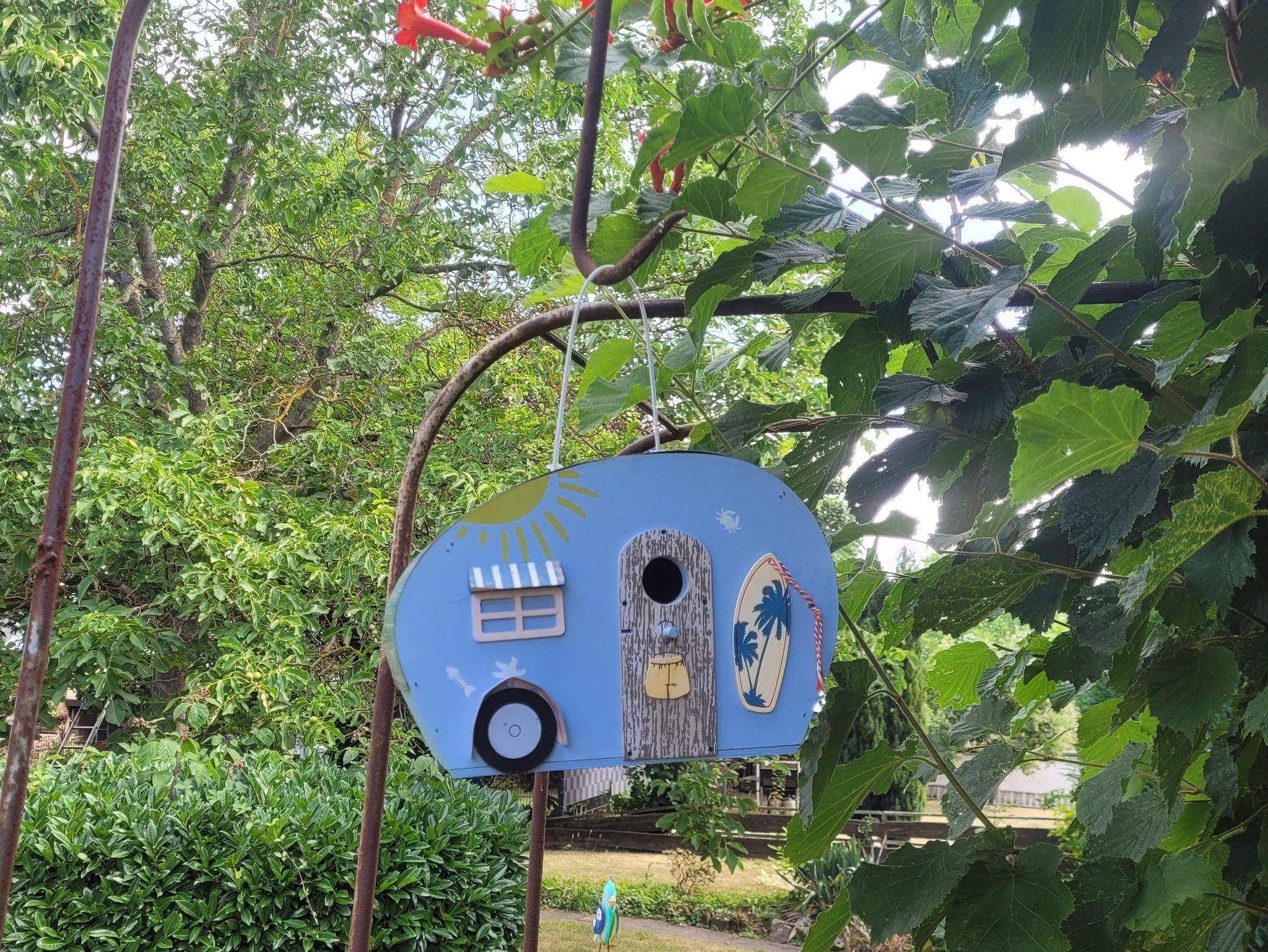 Der eingezäunte Garten mit Gartenhaus und gemauertem Grill ist zu Ihrer Alleinnutzung.