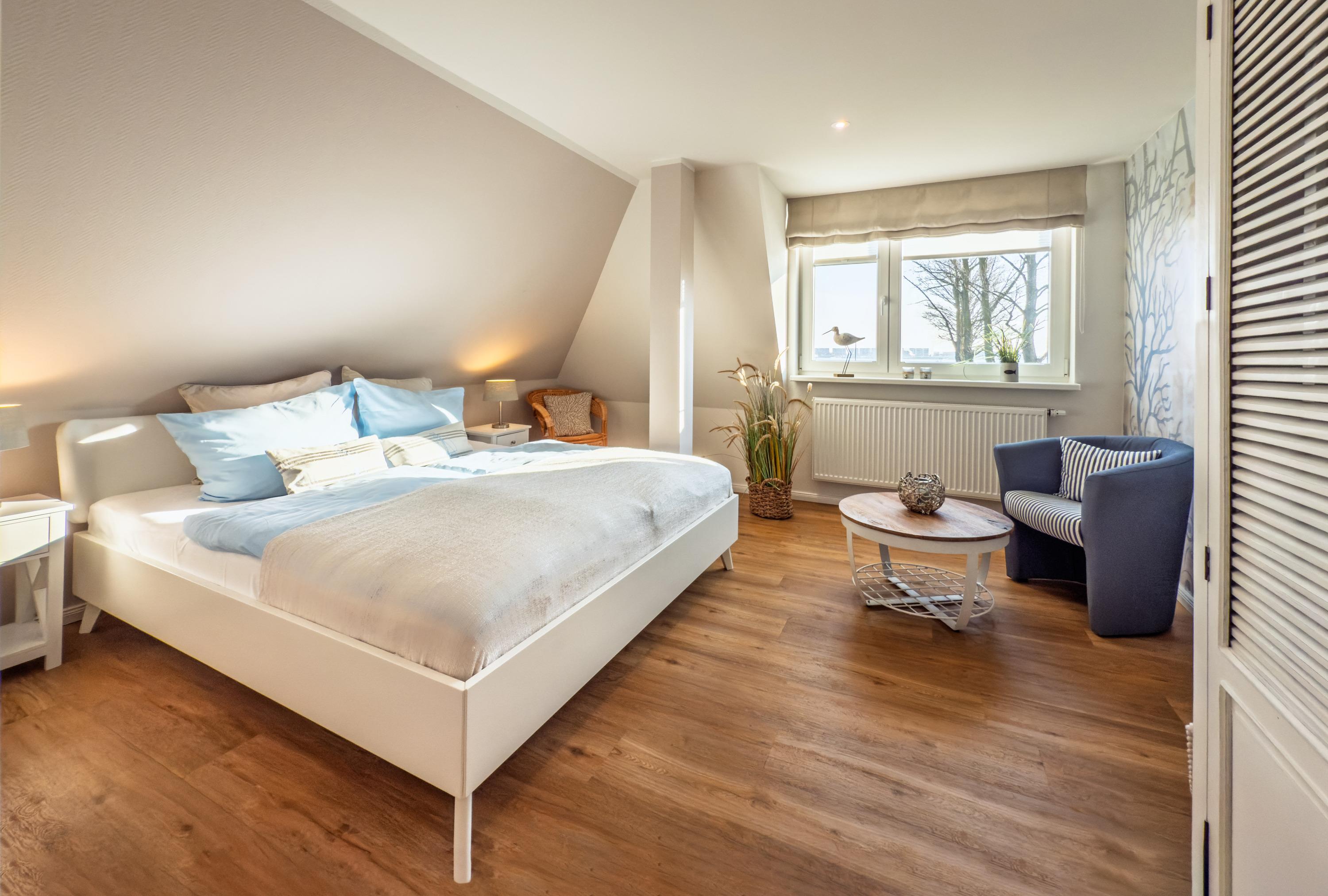 Unsere neue, moderne Wohnung erwartet Sie mit hochwertiger Wohnlichkeit. Die Wohnung liegt im OG eines Einfamilienhauses mit Parkplatz am Haus. Sie verfügt über 2 Schlafräume mit Doppelbetten, ein Wohnzimmer mit Blick auf den Binnensee, eine separate Küche und Duschbad. Hinterm Haus befindet sich ein Garten zum verweilen mit Sonnenterrasse und Grillmöglichkeit.