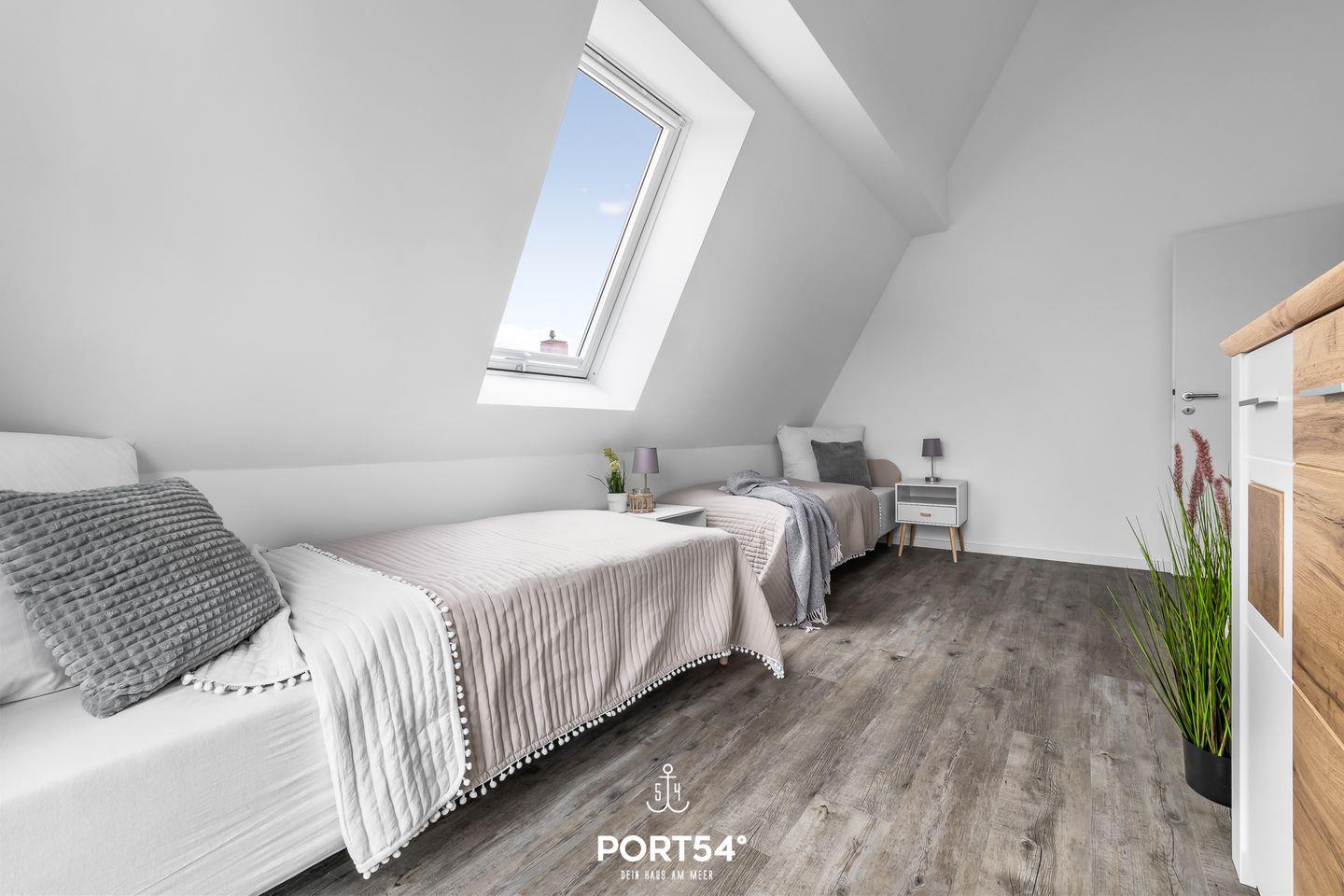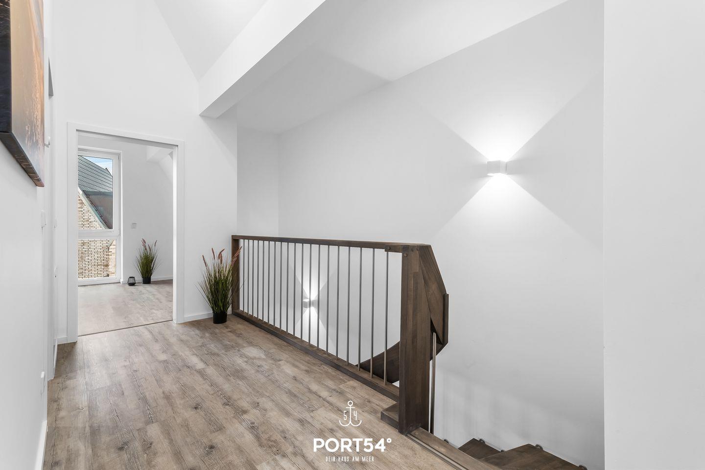 Im Obergeschoss erwarten Dich drei Schlafzimmer sowie das luxuriöse Badezimmer mit finnischer Sauna.