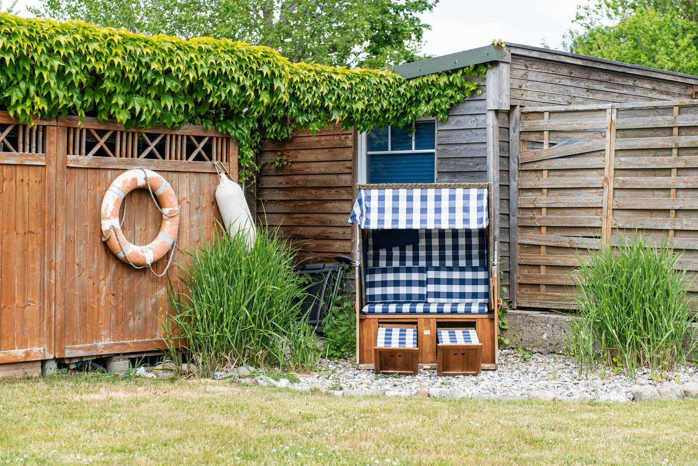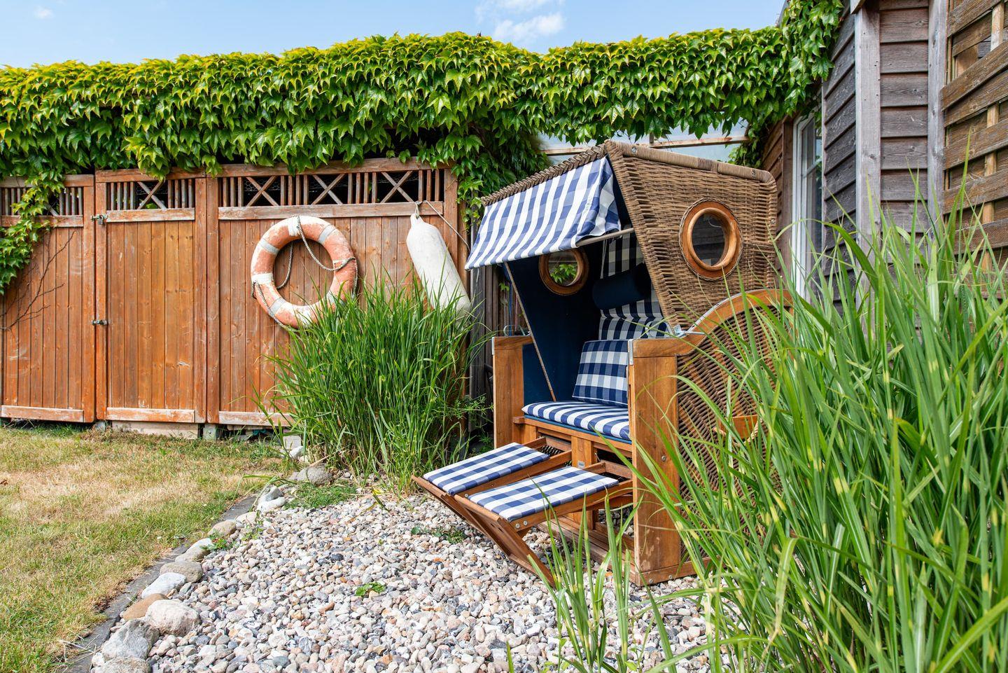 Gerade Familien finden vielfältige Annehmlichkeiten: Ein eigenes Spielzimmer, Kinderspielzeug, sowie praktische Details wie Fliegengitter an den Fenstern, Laminatboden in den Schlafzimmern, Sichtschutz für alle Fenster und eine eigene Waschmaschine sind vorhanden. Im Außenbereich erstreckt sich das 800 m² große Grundstück mit gepflegtem Garten und Liegewiese. Das Angebot für Kinder reicht von Sandkasten, Schaukel, Trampolin bis hin zu einem Strandkorb – ideale Voraussetzungen für Spiel und Erholung an der frischen Ostseeluft. Ein Gartenhaus, ein Kohlegrill und Gartenmöbel bieten den perfekten Rahmen für gesellige Stunden im Freien.