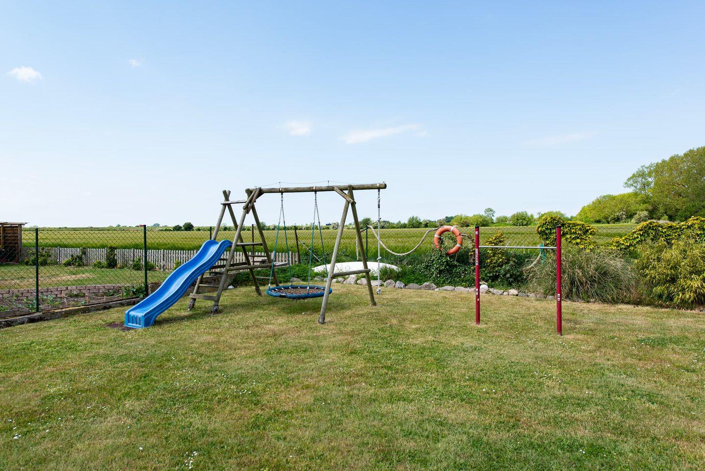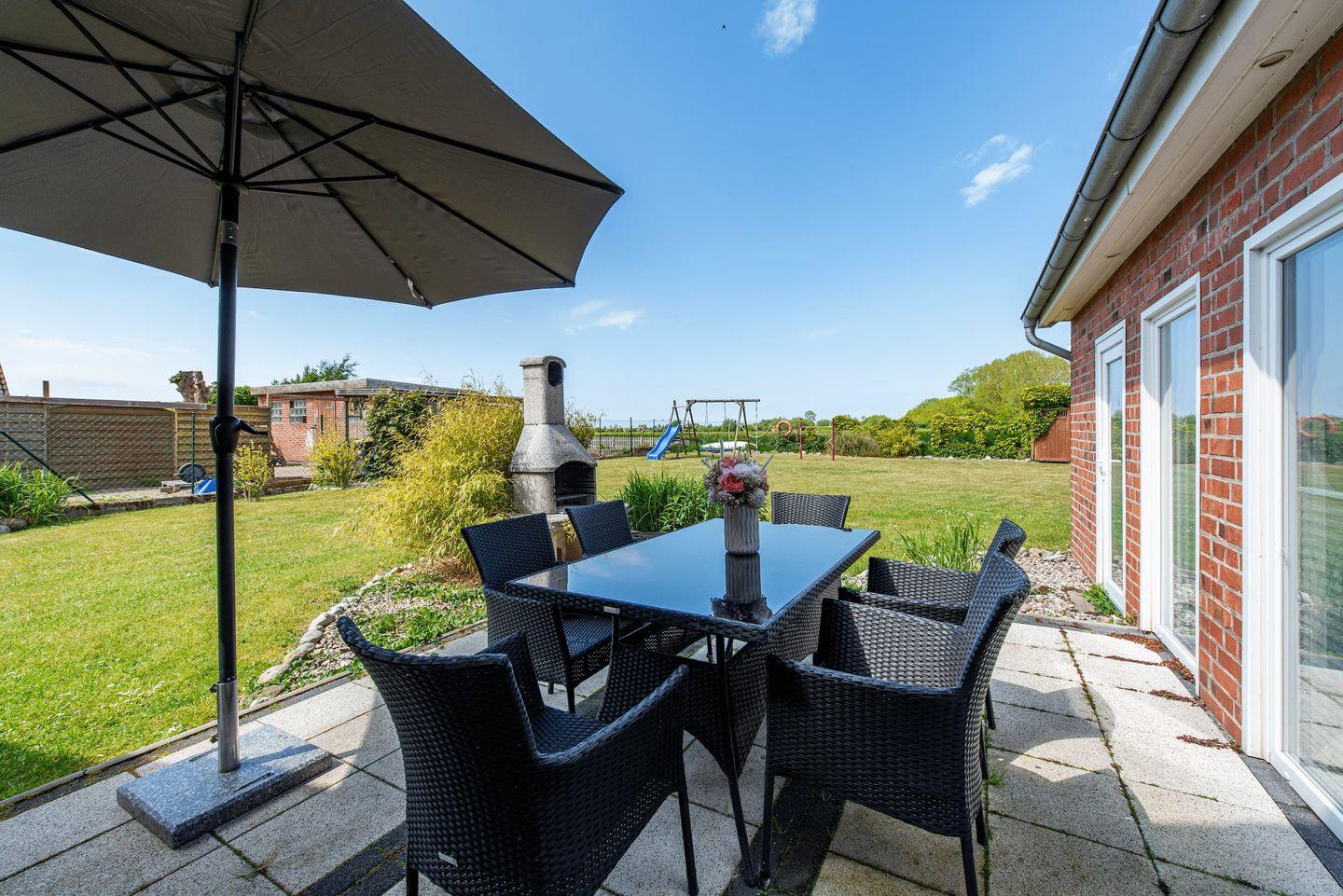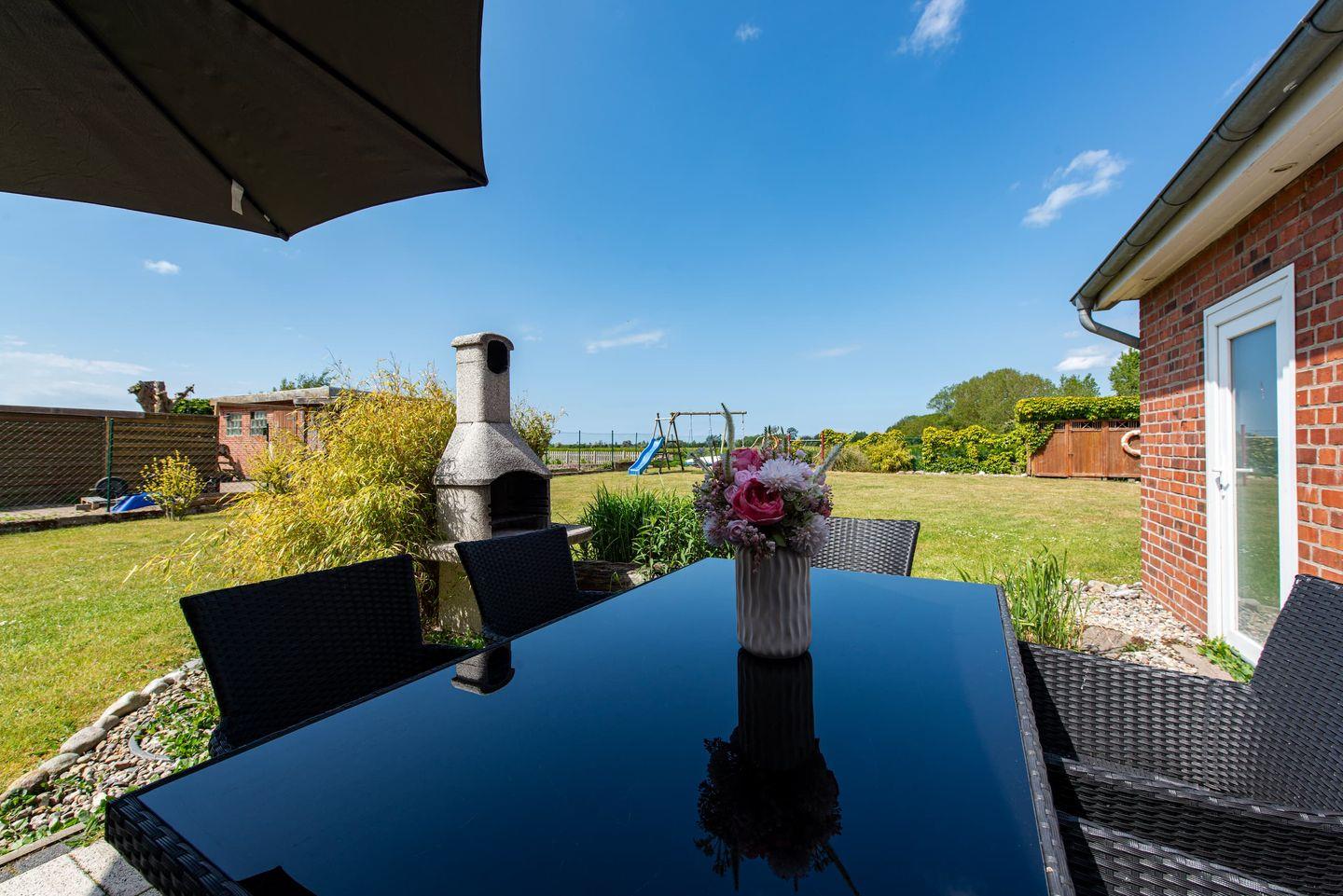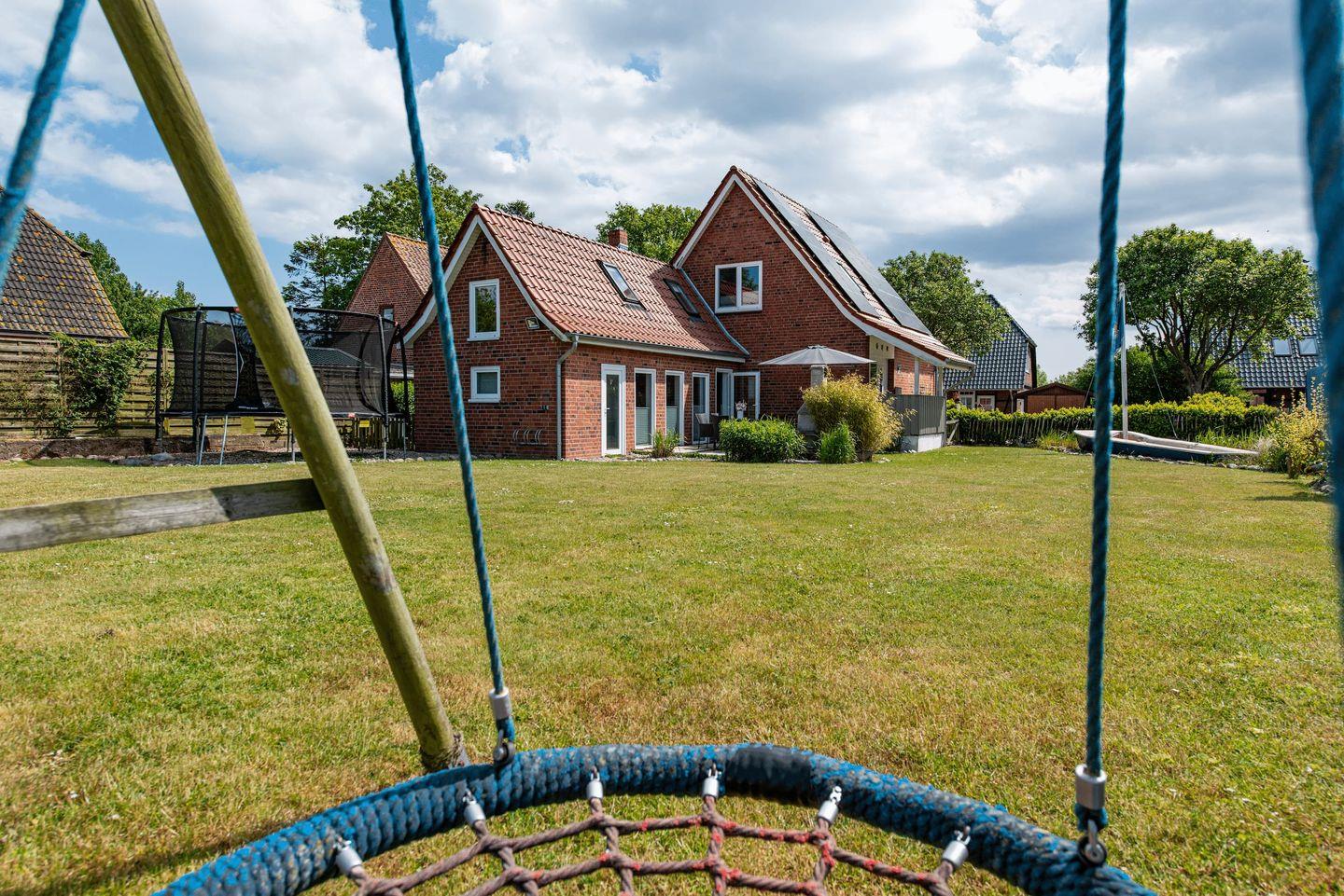 Freistehendes Ferienhaus Huus Strandgut auf Fehmarn mit Sauna, großem Garten und vielfältigen Freizeitmöglichkeiten.