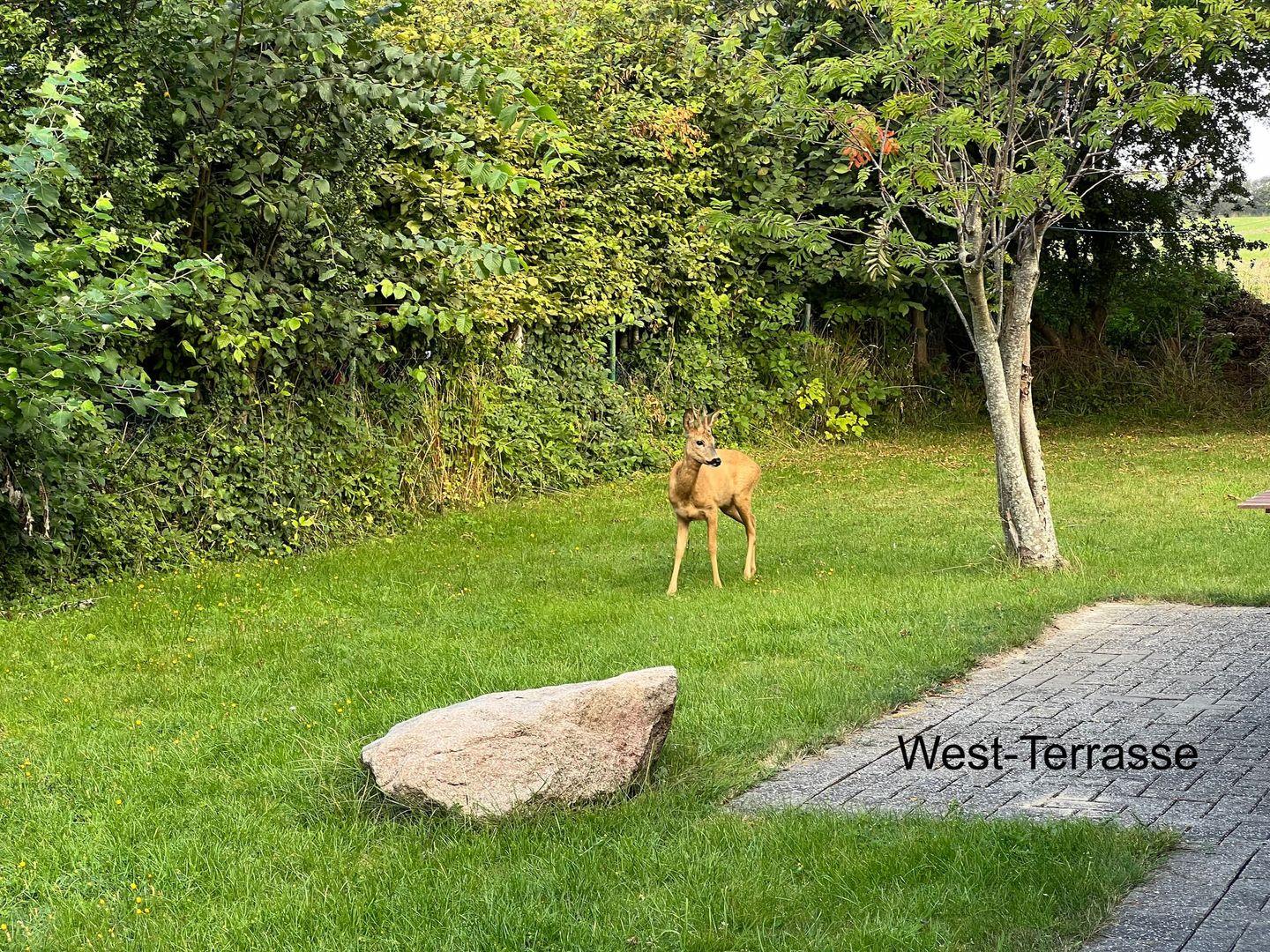 Das freistehende Haus liegt auf einem 1000 m² großen Grundstück mit altem Baumbestand in naturnaher Lage, das gerne von Rehen, Hasen und einer Vielzahl von Vögeln besucht wird.