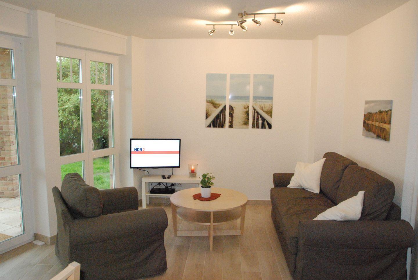 Moderne Ferienwohnung Strandgeist Fehmarn mit Terrasse, Gartenblick und barrierefreiem Komfort.