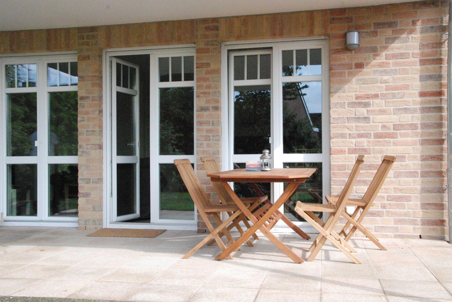 Moderne Ferienwohnung Strandgeist auf Fehmarn mit Terrasse und Gartenblick