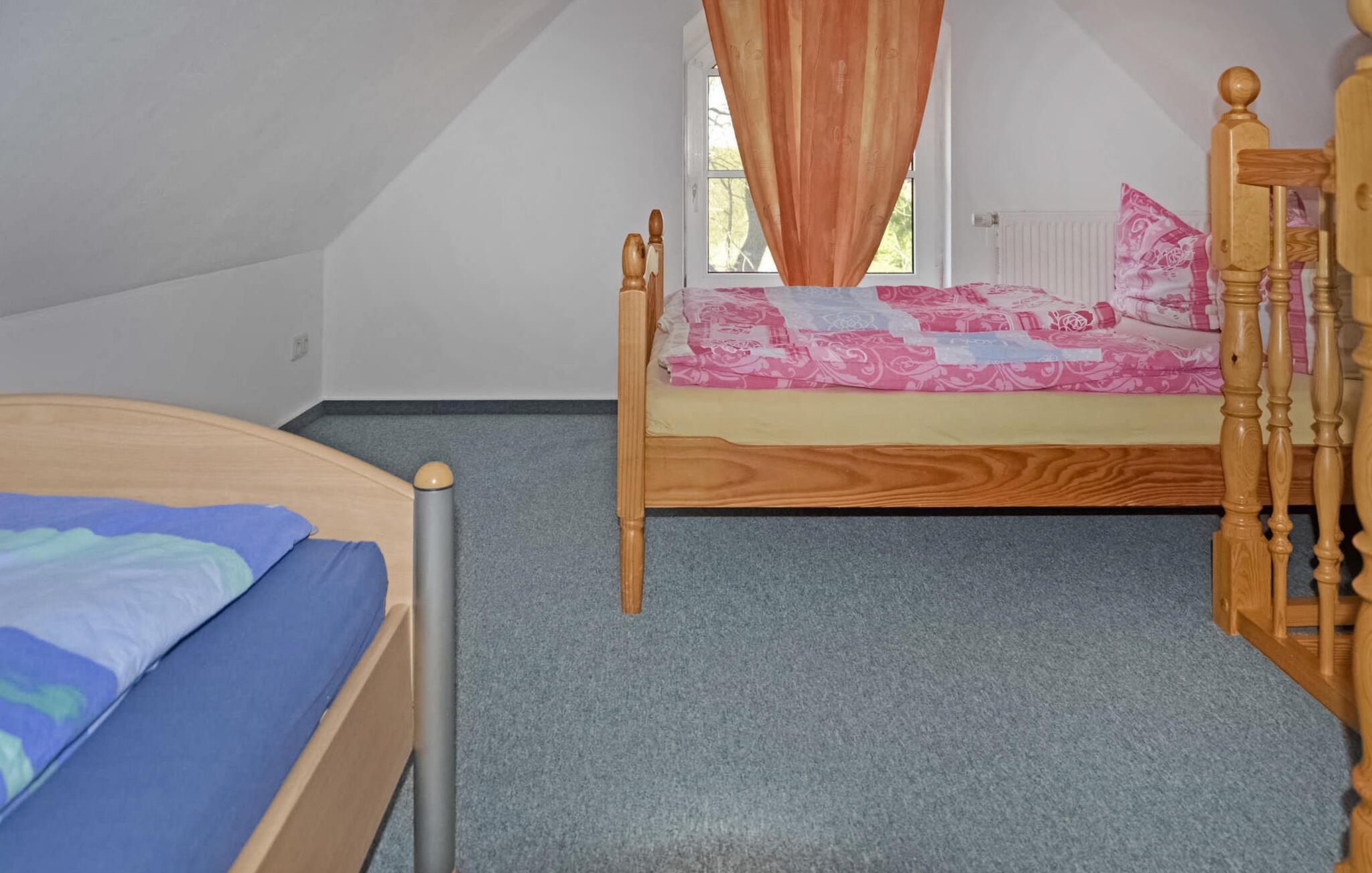 Eine von zwei gut ausgestatteten Ferienwohnungen, die separat im Obergeschoss eines Wohnhauses auf dem Wohngrundstück des Eigentümers liegen. Sie haben einen separaten Zugang. Es stehen Ihnen ein Außensitzplatz, ein Grill und ein Parkplatz zur Verfügung. Im Gesamtpreis sind Endreinigung, Bettwäsche, Handtücher, Wasser und Energie enthalten. Ausstattung mit Wohnraum (Polstermöbel, Essplatz, Flachbild-TV, Radio), Schlafraum über Treppe (2 Einzelbetten, Kinderbett zum Zustellen), Küchenzeile (E-Herd, Kühlschrank, div. Küchengeräte), DU/WC, Zentralheizung.