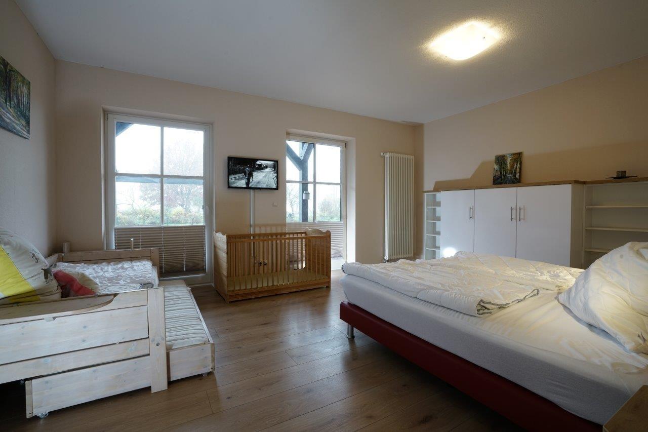 eines ein großes Jugendbett für 2 größere Kinder. Fernseher gibt es neben dem Wohnraum noch 2 weitere. Die