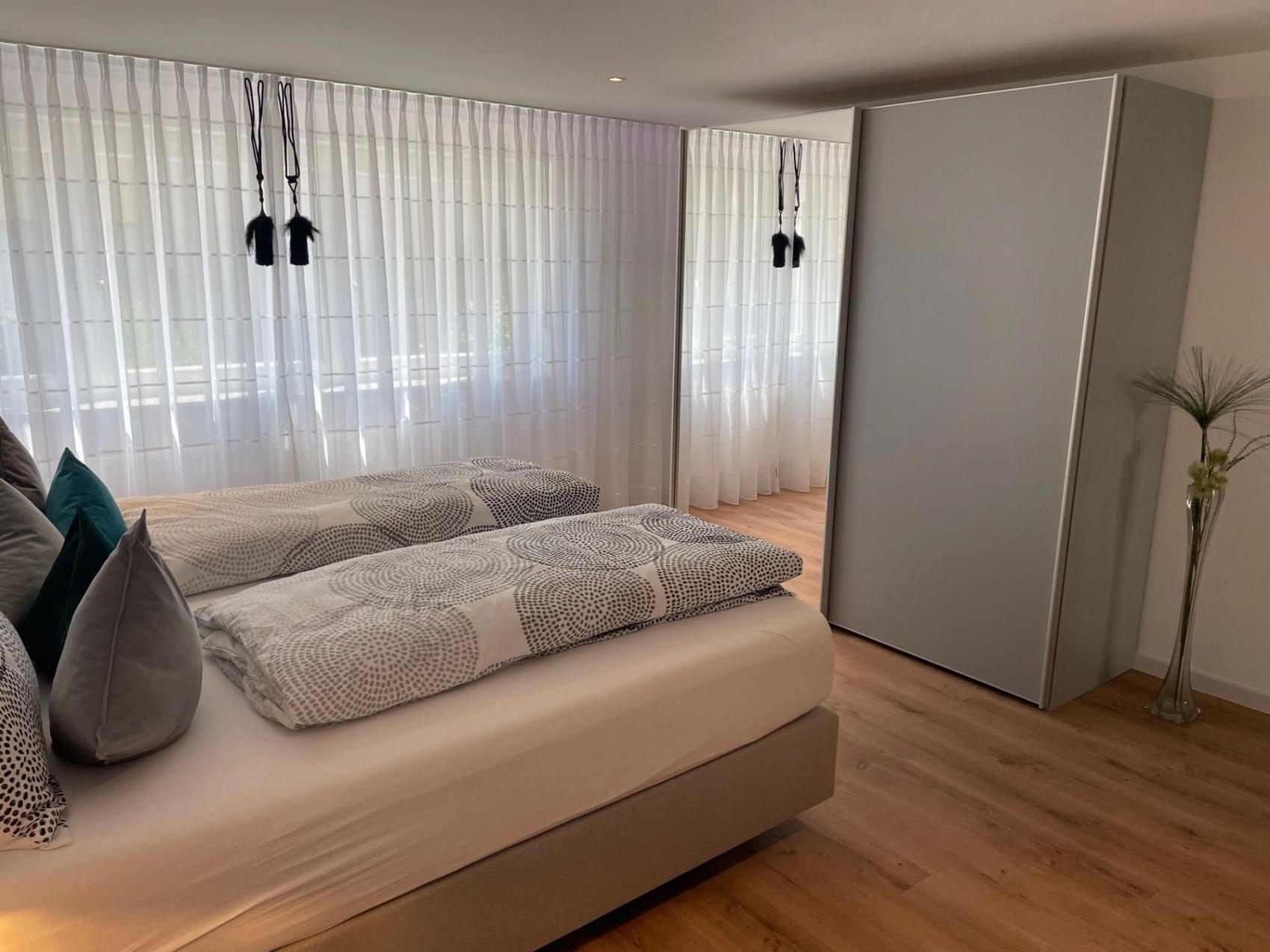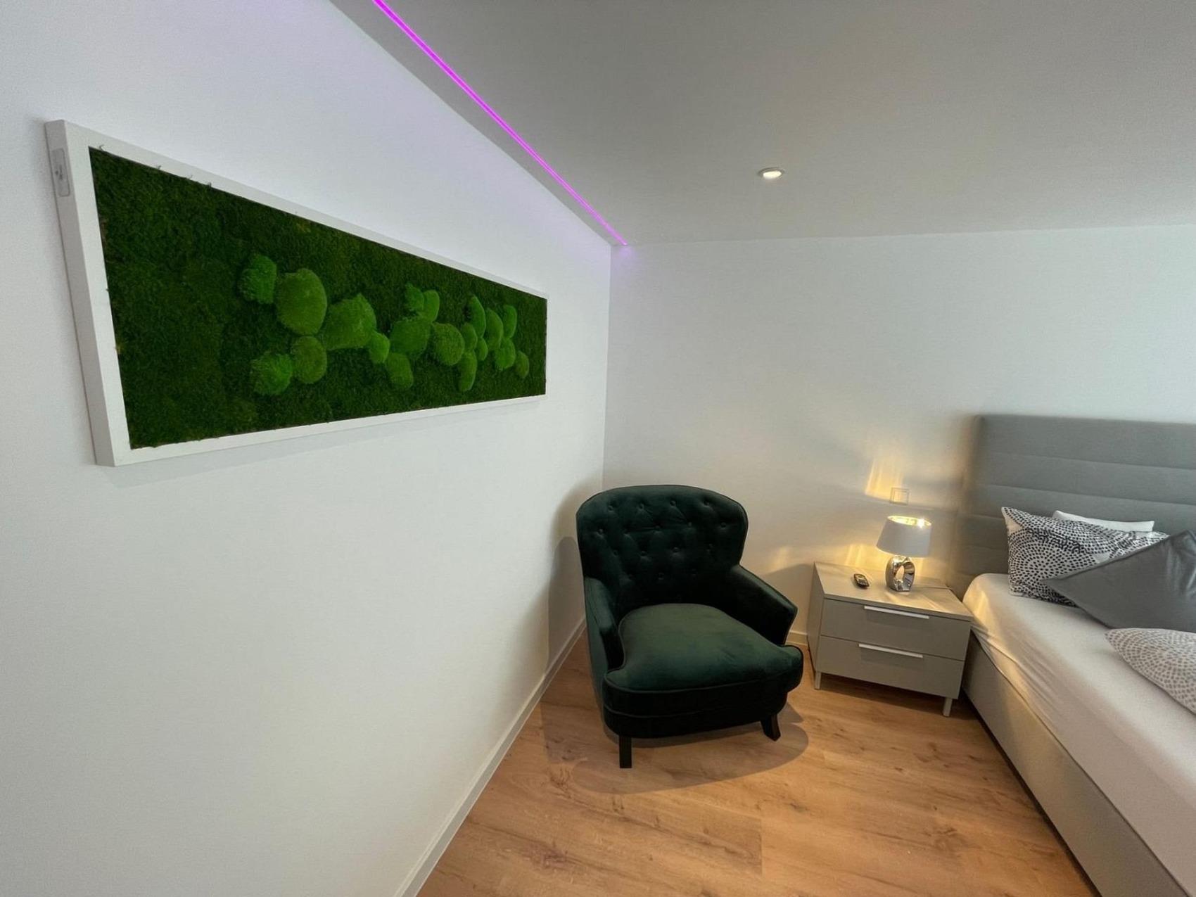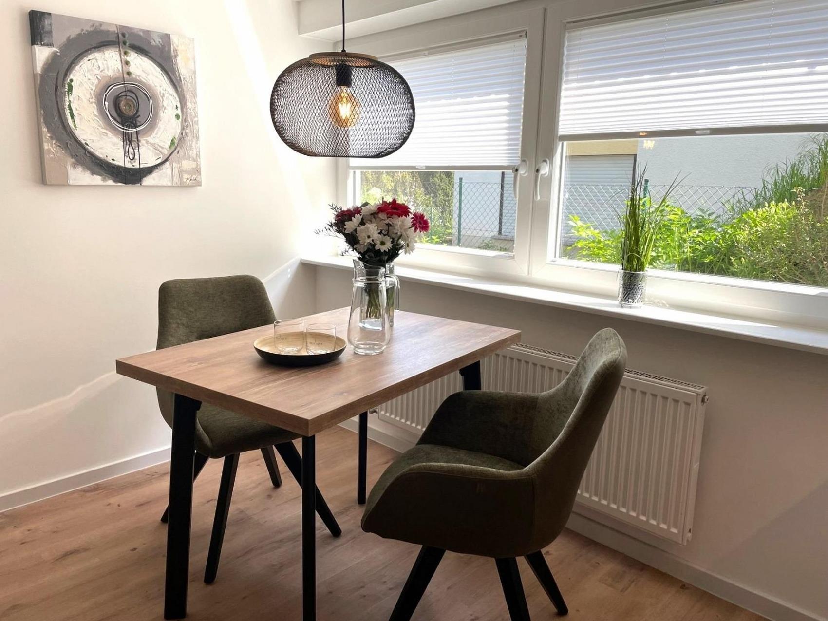 Diese 4-Sterne Ferienwohnung ist ein wahres Juwel und bietet Ihnen den Komfort , den Sie von einer luxuriösen Unterkunft erwarten. Die Wohnung wurde komplett renoviert und neu möbliert und wird nur an max. 2 Erwachsene vermietet. Die Einrichtung ist modern und stilvoll, mit hochwertigen Materialien und ausgesuchten Möbeln, um eine warme und einladende Atmosphäre zu schaffen.Die Wohnung verfügt über geräumige und sonnige Zimmer, die mit allem ausgestattet sind, was Sie für einen angenehmen Aufenthalt benötigen. Das Schlafzimmer ist mit einem bequemen Boxspringbett und hochwertiger Bettwäsche ausgestattet, damit Sie sich wie zu Hause fühlen. Das Wohnzimmer ist der perfekte Ort, um sich zu entspannen und bietet Ihnen eine gemütliche Sitzecke und einen Flachbild-TV.Die voll ausgestattete Küche ist mit Geräten und Geschirr ausgestattet, hier finden Sie alles, was Sie für die Zubereitung von Mahlzeiten benötigen. Genießen Sie Ihre Mahlzeiten in Ihrem privaten Pavillon mit Blick in den wunderschönen Garten .Das luxuriöse Badezimmer verfügt über einen ebenerdigen, großzügigen, offenen Duschbereich mit Regendusche, einen beheizten Handtuchhalter sowie eine Fußbodenheizung, um Ihnen den höchsten Komfort zu bieten.Mit unserer Sauna in Ihrer Ferienwohnung haben Sie die Flexibilität, sie jederzeit (tägliche Laufzeit der Sauna ist auf max. 3 Stunden begrenzt) gegen eine Gebühr zu nutzen.In Ihrem eigenen Garten können Sie die Sonne genießen und sich entspannen. Der liebevoll gestaltete Außenbereich bietet Ihnen eine Oase der Ruhe und Erholung. Verbringen Sie laue Sommerabende auf der Terrasse Ihres Pavillons und lassen Sie den Alltag hinter sich. Genießen Sie dabei den Blick auf die gepflegten Blumenbeete und das satte Grün des Rasens. Hier können Sie die Natur hautnah erleben und die Seele baumeln lassen. Wir freuen uns darauf, Ihnen diesen besonderen Ort zu präsentieren und Ihren Aufenthalt unvergesslich zu machen.