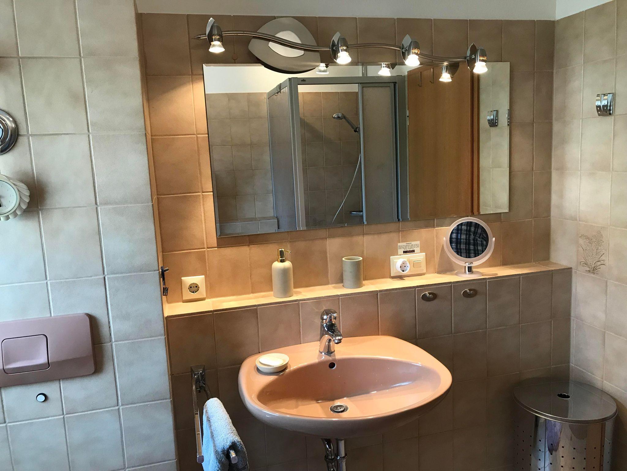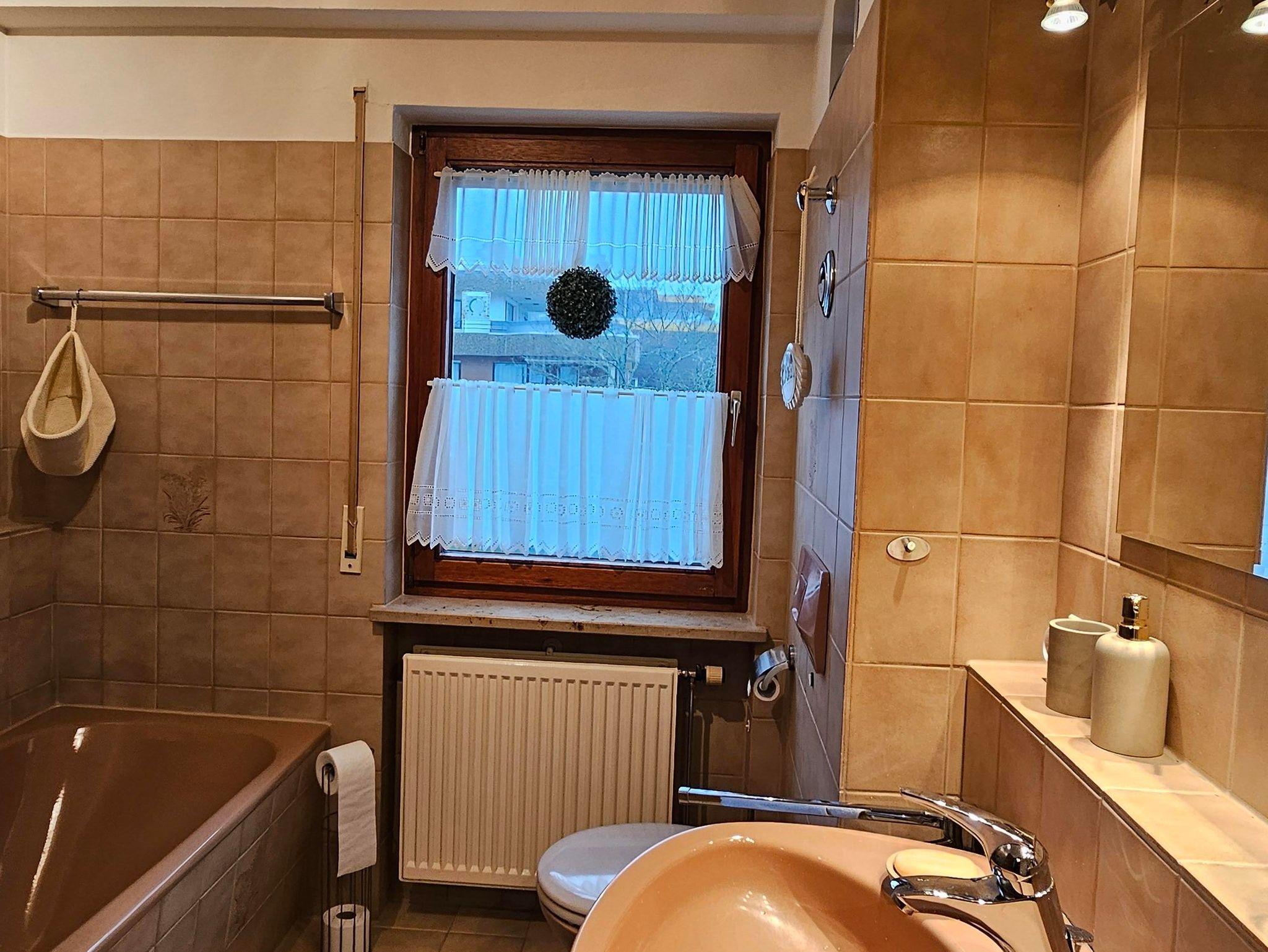 Das Badezimmer besitzt ein Tageslichtfenster. Dort befindet sich eine Badewanne sowie Duschkabine, Haartrockner, ein großer Spiegel und ein Kosmetik-Ablageplatz. Handtücher und Bettwäsche stellen wir Ihnen natürlich zur Verfügung. In dem separaten WC befindet sich eine moderne Waschmaschine.