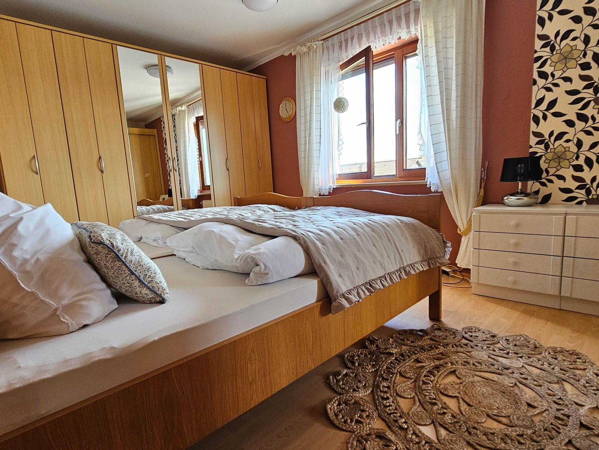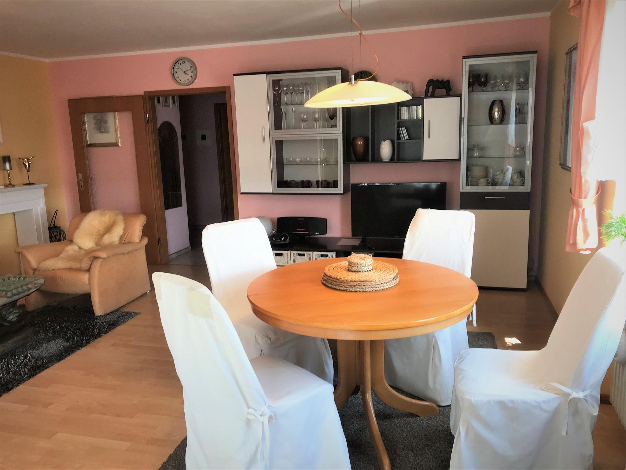 Unsere Wohnung befindet sich in der zweiten Etage mit einem sehr schönen Ausblick über die Stadt. Sie hat drei Zimmer, ein Wohnzimmer, zwei Schlafzimmer, eine voll ausgestattete Küche, ein Bad sowie ein Gäste-WC - ideal für einen Familienurlaub mit bis zu max. 7 Erwachsenen oder 4 Erwachsenen und 3 Kindern.