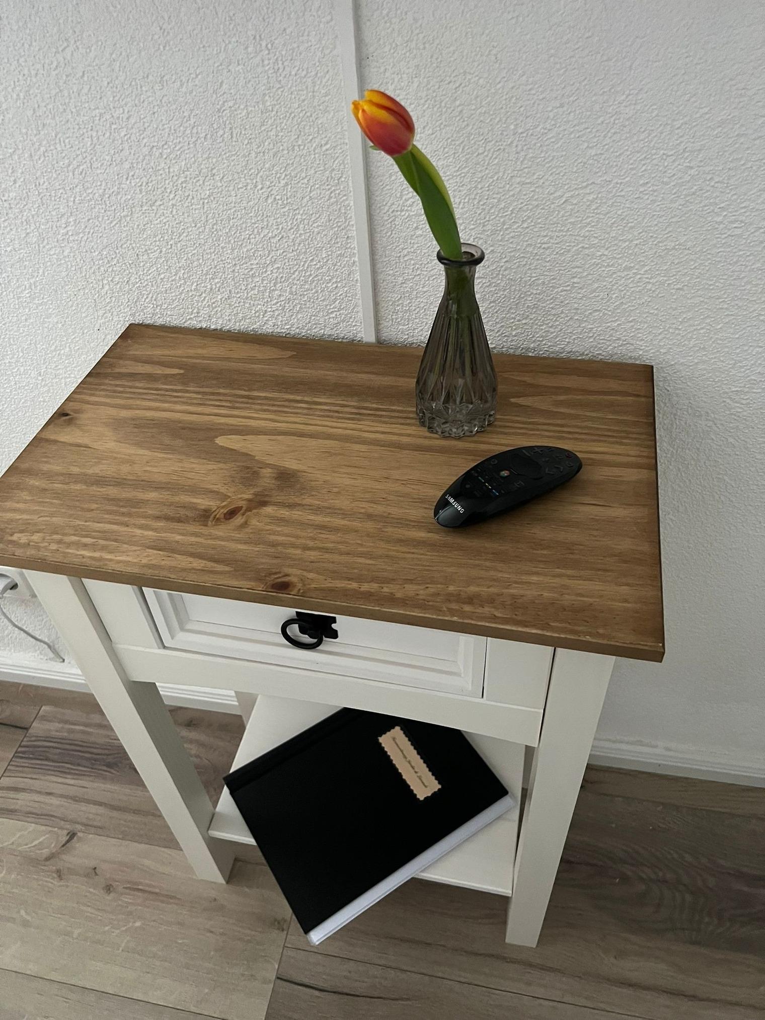 Die Unterkunft umfasst ein Wohn-Esszimmer mit Kochnische. Darin enthalten sind Kühlschrank, Mikrowelle , Toast, Kaffeemaschine für Filterkaffee und Induktionskochfeld. Ein Schlafzimmer mit Doppelbett und Flach-TV. Sowie ein Bad mit Dusche. Eine kleineTerrasse mit Panoramablick umgeben von einem Lavendelgarten. Sie können direkt vor der Ferienwohnung parken. Abstellmöglichkeit für die Fahrräder ist ebenfalls vorhanden.