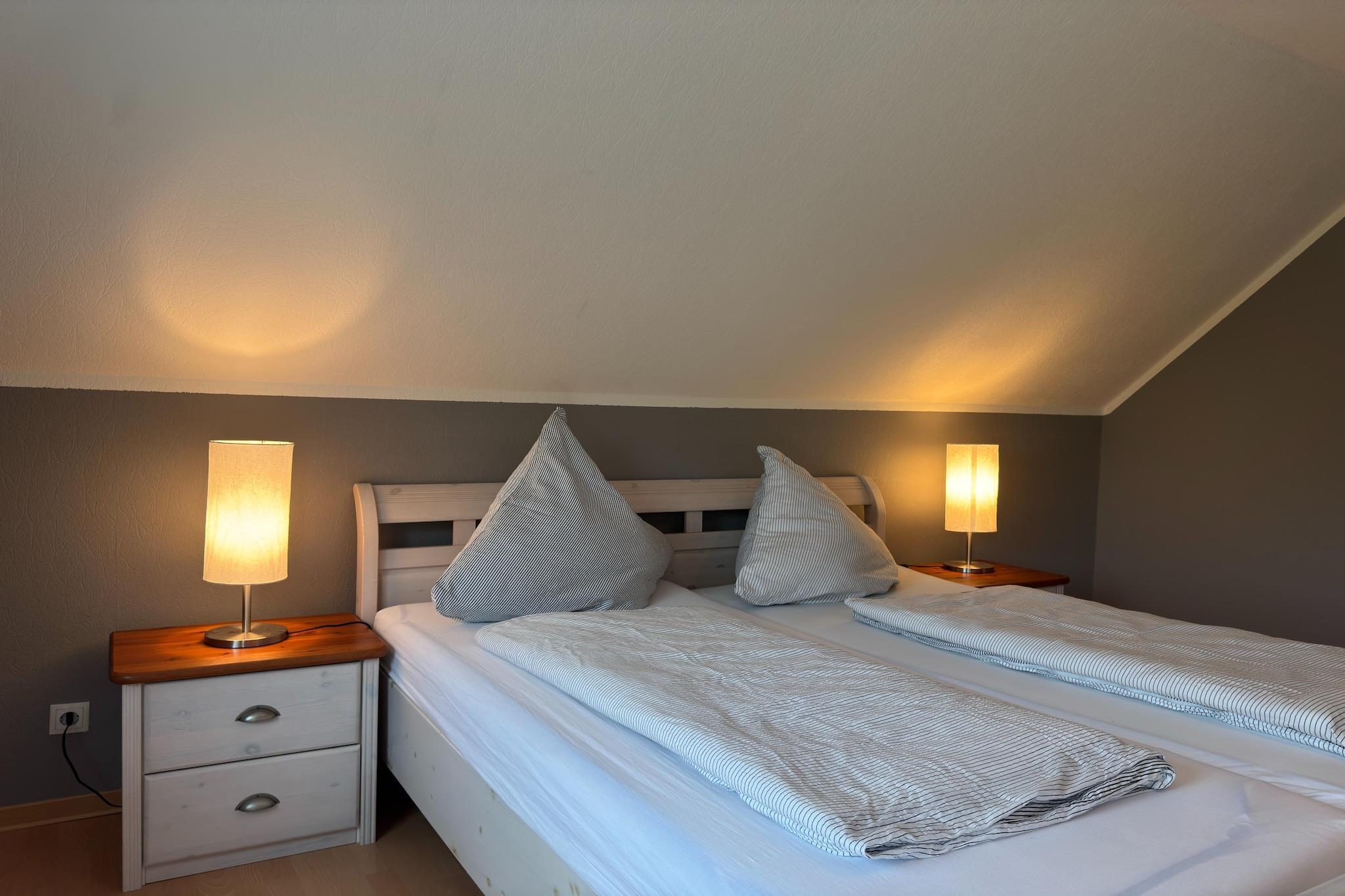 Parterre: (Küche(Esstisch(4 Personen), Kochplatte(4 Kochplatten, Ceranfeld), Wasserkocher, Toaster, Dunstabzugshaube, Kaffeemaschine, Backofen, Mikrowelle, Spülmaschine, Kühl-/Gefrierkombination), Wohn/Esszimmer(TV(Satellit), Sitzecke, DVD-Spieler, Radio), Schlafzimmer(2x Einzelbett), Badezimmer(Badewanne, Dusche, Waschbecken, Toilette)) Dachgeschoss: (Schlafzimmer(Doppelbett)) Garage, Trockner(gegen Gebühr), Waschmaschine(gegen Gebühr), Heizung(Zentral, Gas), Terrasse, Garten, Gartenmöbel, Liegen, Parkplatz, Parkplatz, Rutsche, Gartenlounge, Schaukel, Bettwäsche inklusive