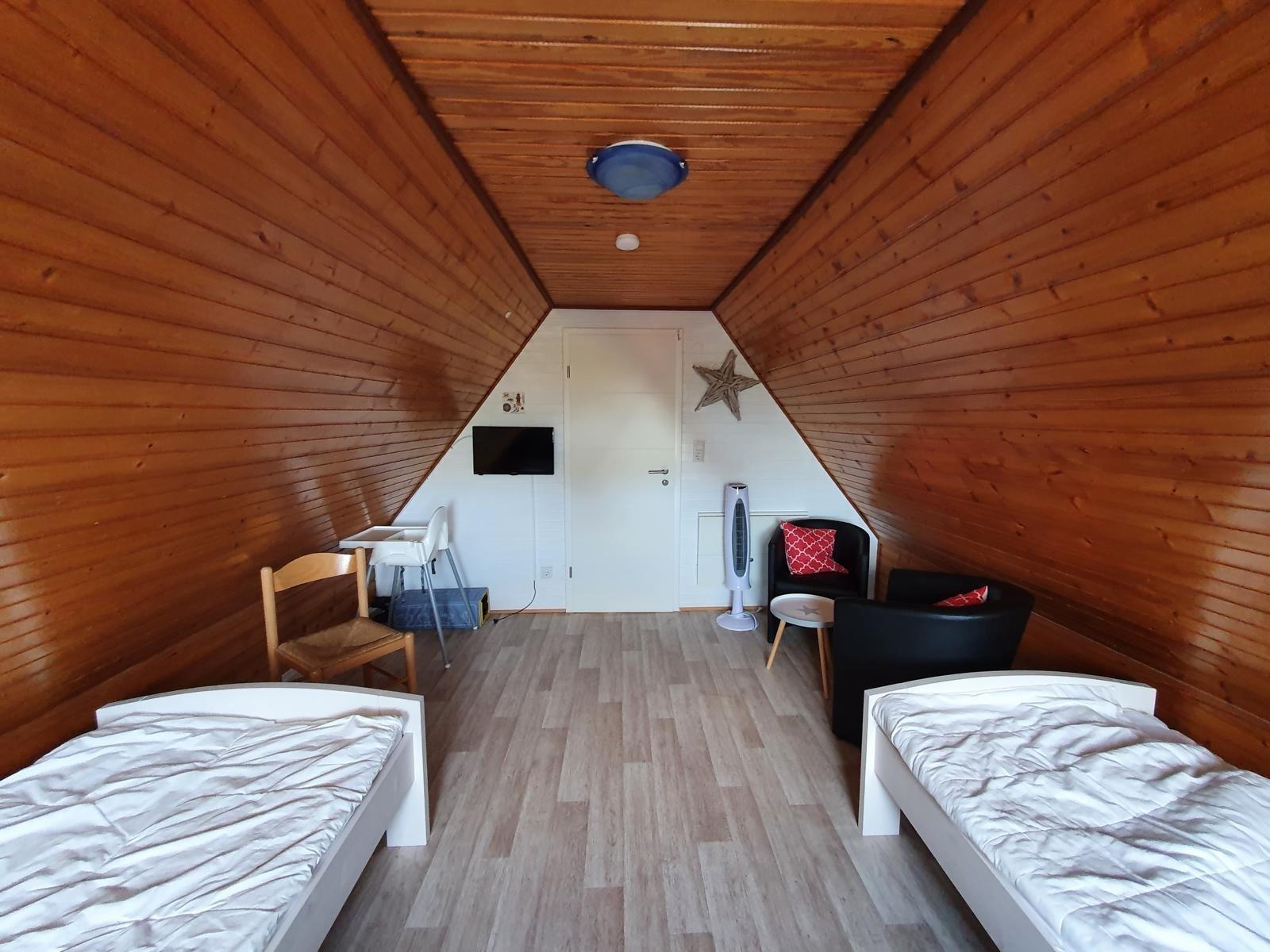 Two twin beds with nightstand and reading lamp, Satellite-TV and wardrobe. Additional Hauck portacrib (bed for baby / infant till age of 3) is available free of charge.