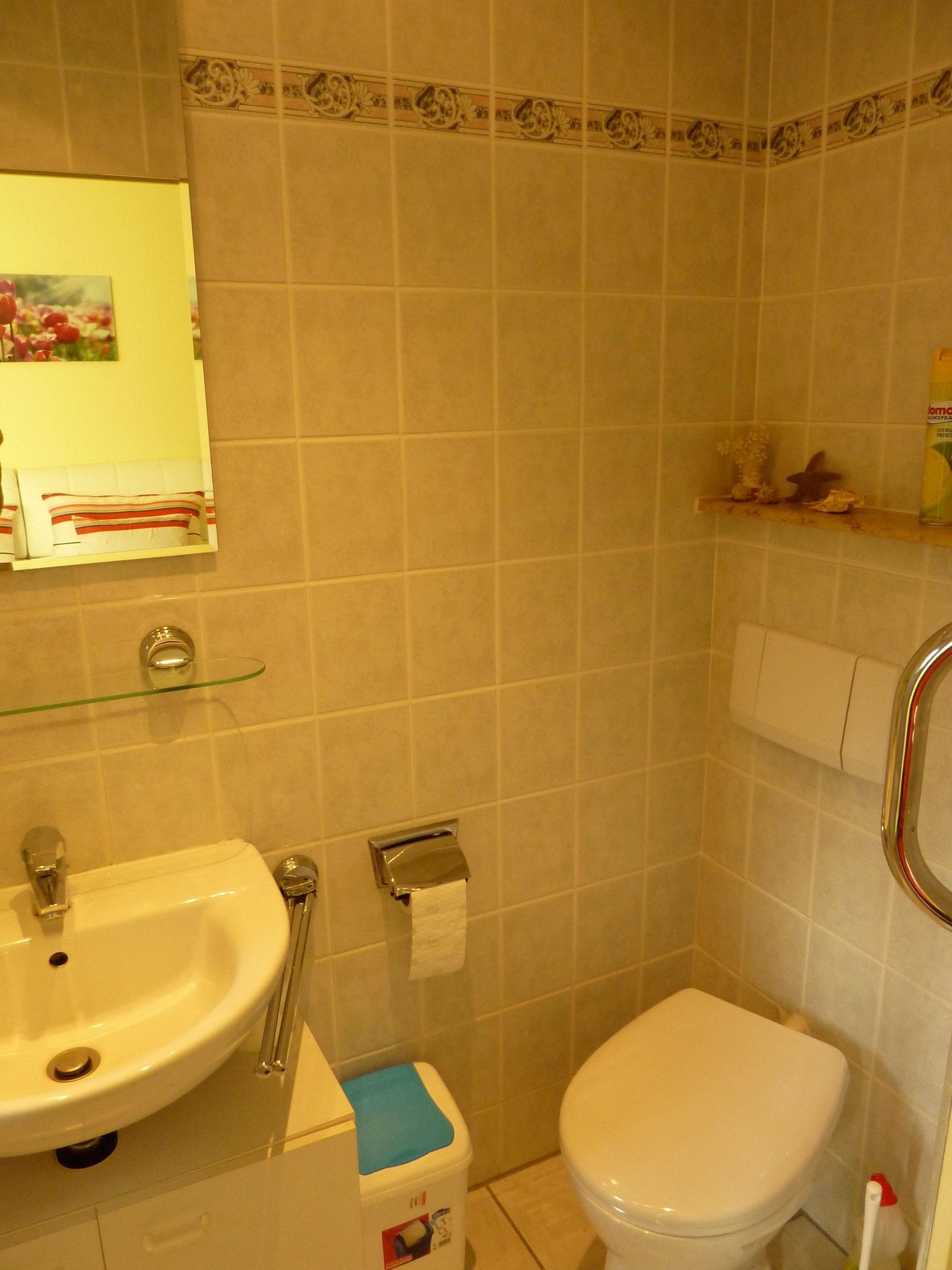 Kleines Schlafzimmer (Doppelbett) mit anschliessendem sehr kleinen Bad mit Du., Waschb.,WC.