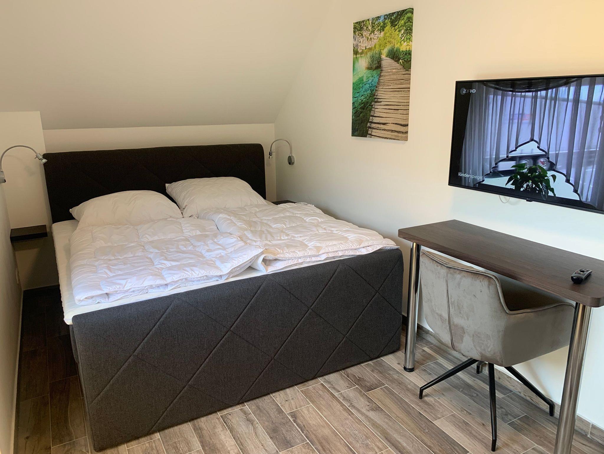Die 4 Schlafzimmer verfügen ebenfalls alle über Flat-TV und sind jeweils mit 180 x 200 cm großen Boxspringbetten ausgestattet.