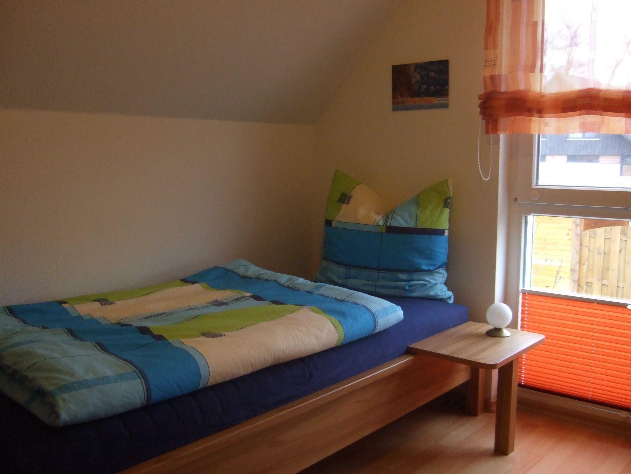 Ein Kinderbett ist vorhanden. Dieses enthält nur eine Matratze und kein Bettzeug.