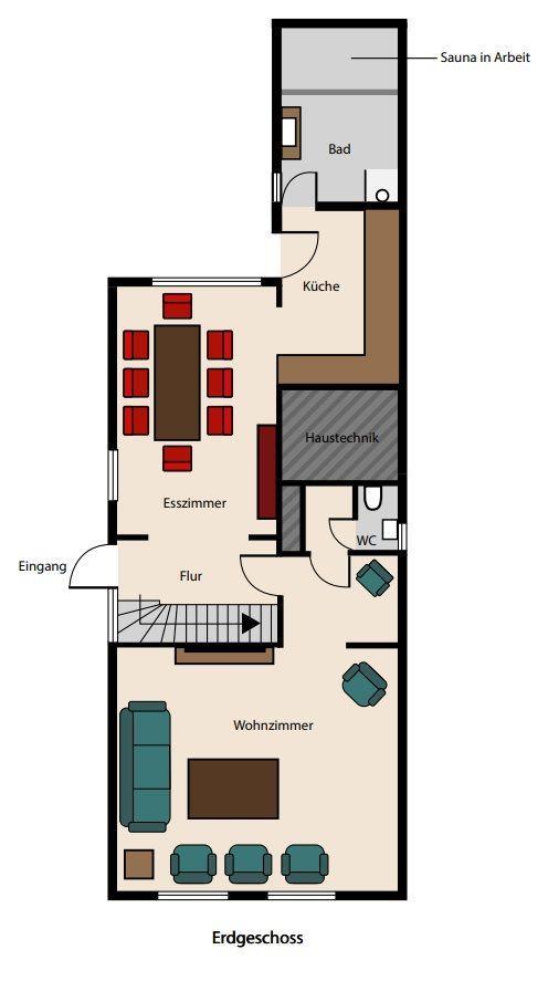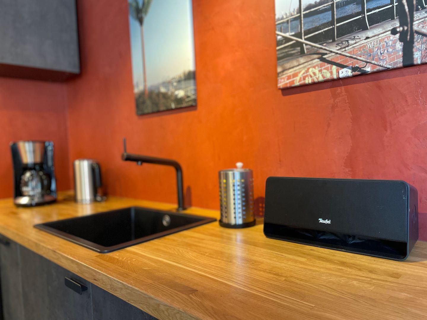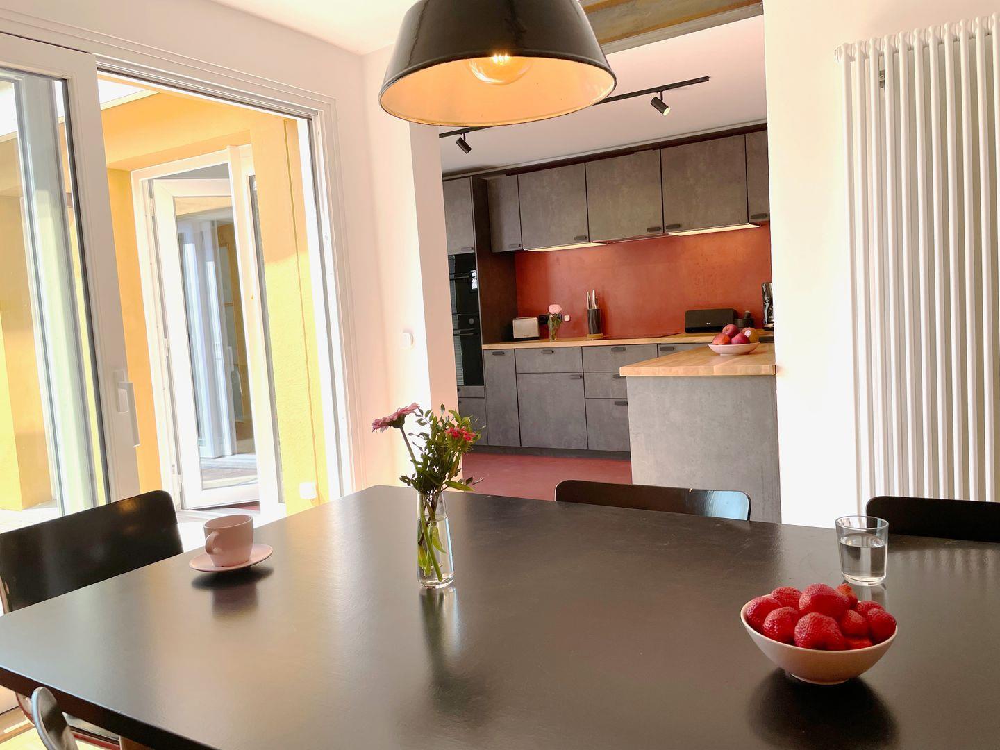 Voll ausgestattet ist der offene Küchen-Essbereich zentraler Ort und vor dem riesigem Fernseher mit Netflix und IP-TV können es sich im 40qm Wohnzimmer wirklich alle zusammen gemütlich machen. Schnelles Internet gibt’s natürlich!