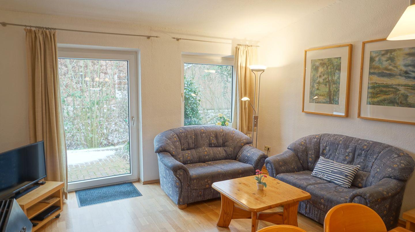 Gemütliche Ferienwohnung mit Terrasse und Kamin in Garding, ideal für Familien mit Kindern.
